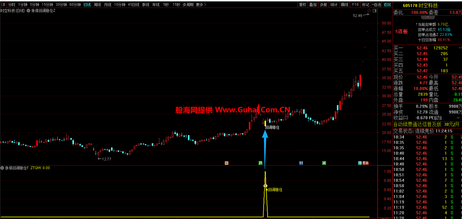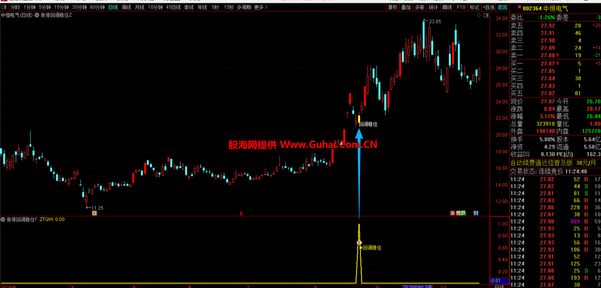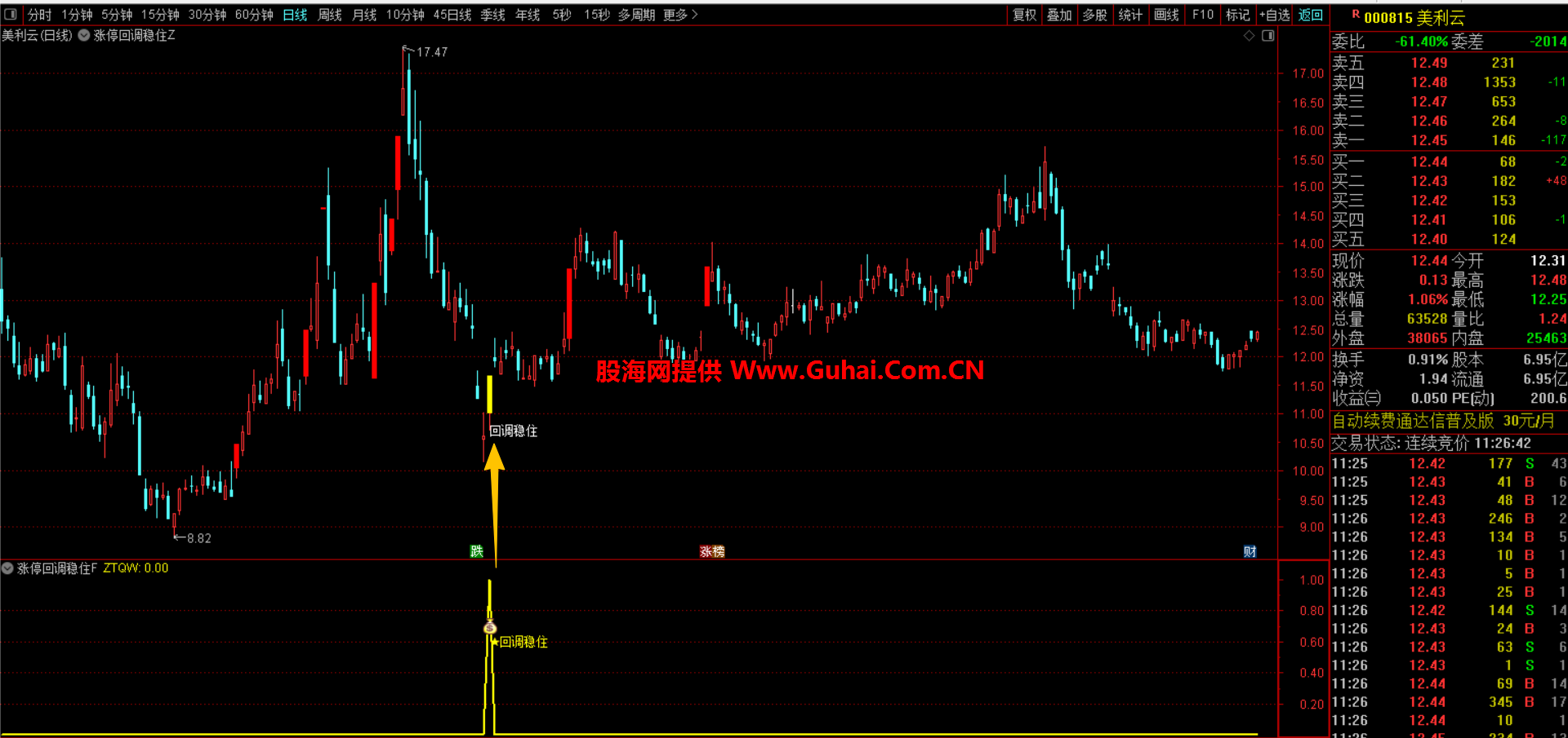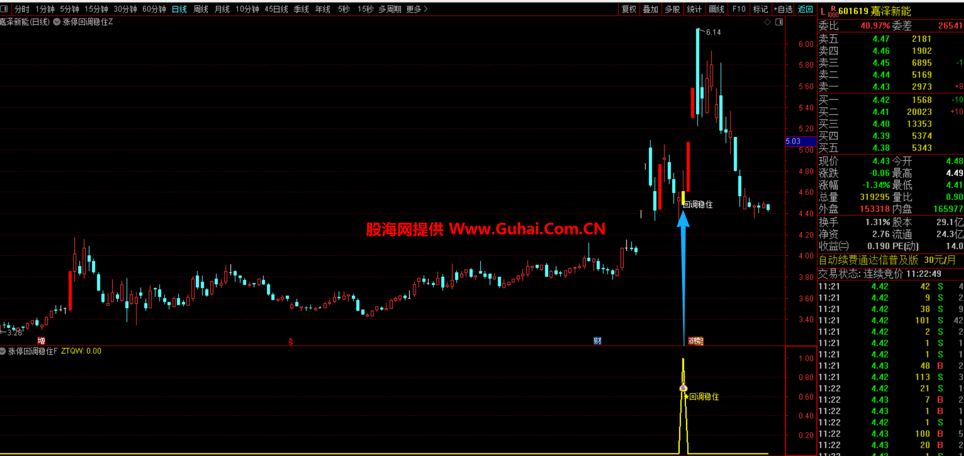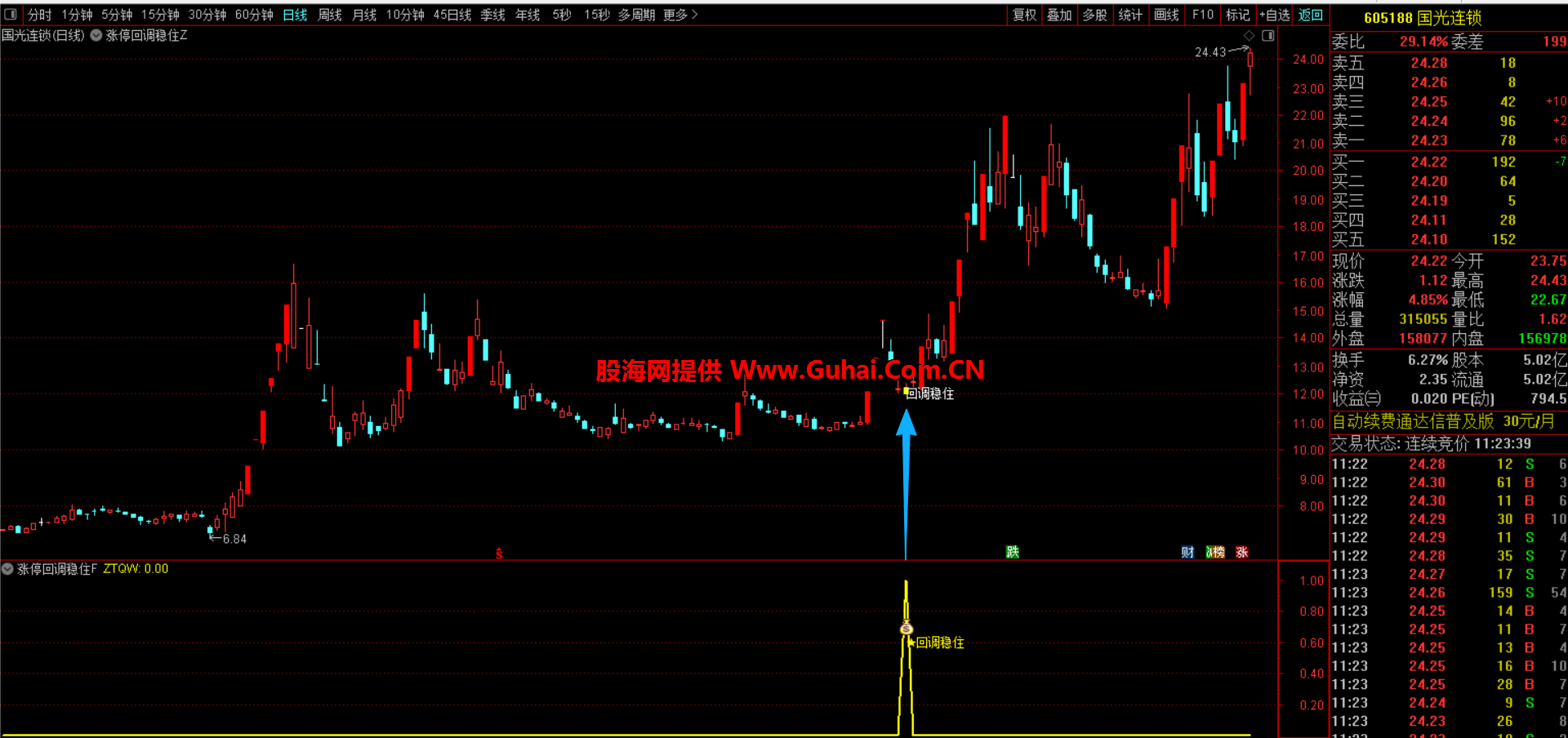 通达信涨停回调稳住主副图选股指标、识别股票价格走势中的特定涨停回调形态信号源码无未来函数