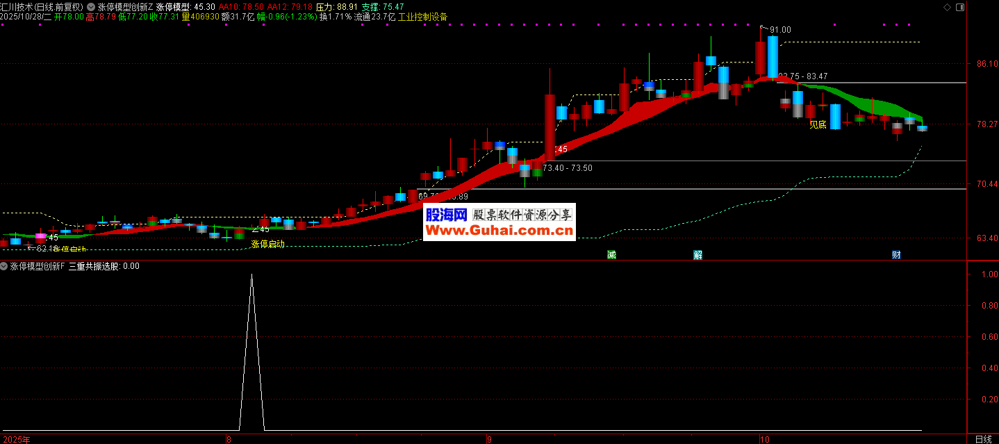 本指标是多维度综合量价趋势画线指标,整合量能分析、趋势跟踪、买卖信号标注、压力支撑识别、K 线形态美化等功能,核心用于捕捉个股趋势转折、强弱变化及精准买卖点,适用于短线、波段交易的行情辅助判断。