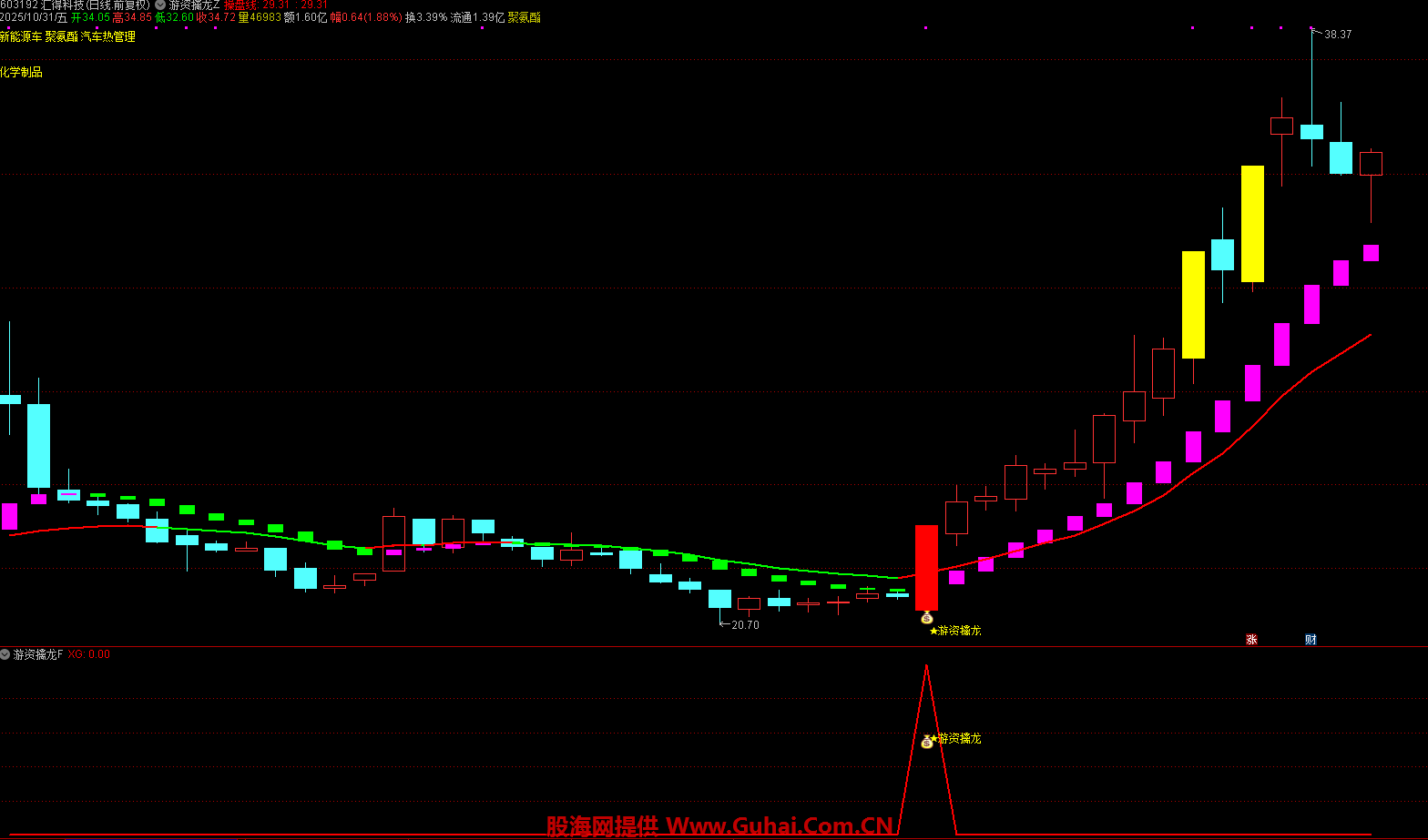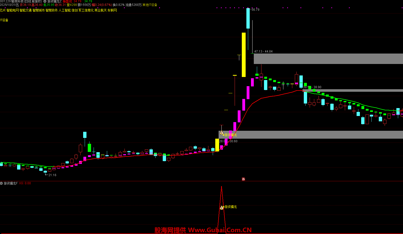 出场建议:主图跌破紫色柱出场或依据自身交易系统设置止损和出场,可根据盈亏比自行把握。