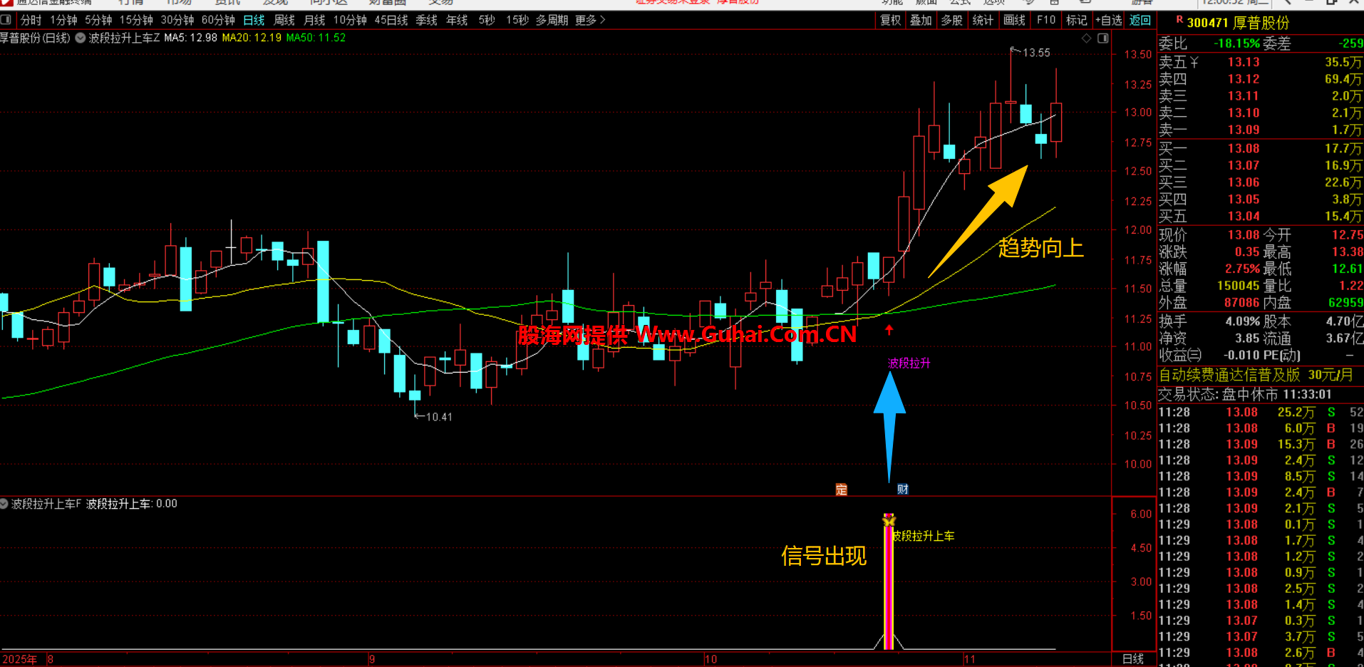 通达信【波段拉升上车】主副图选股指标、捕捉趋势启动初期且具备健康量价配合标的 源码无未来函数手机电脑通用