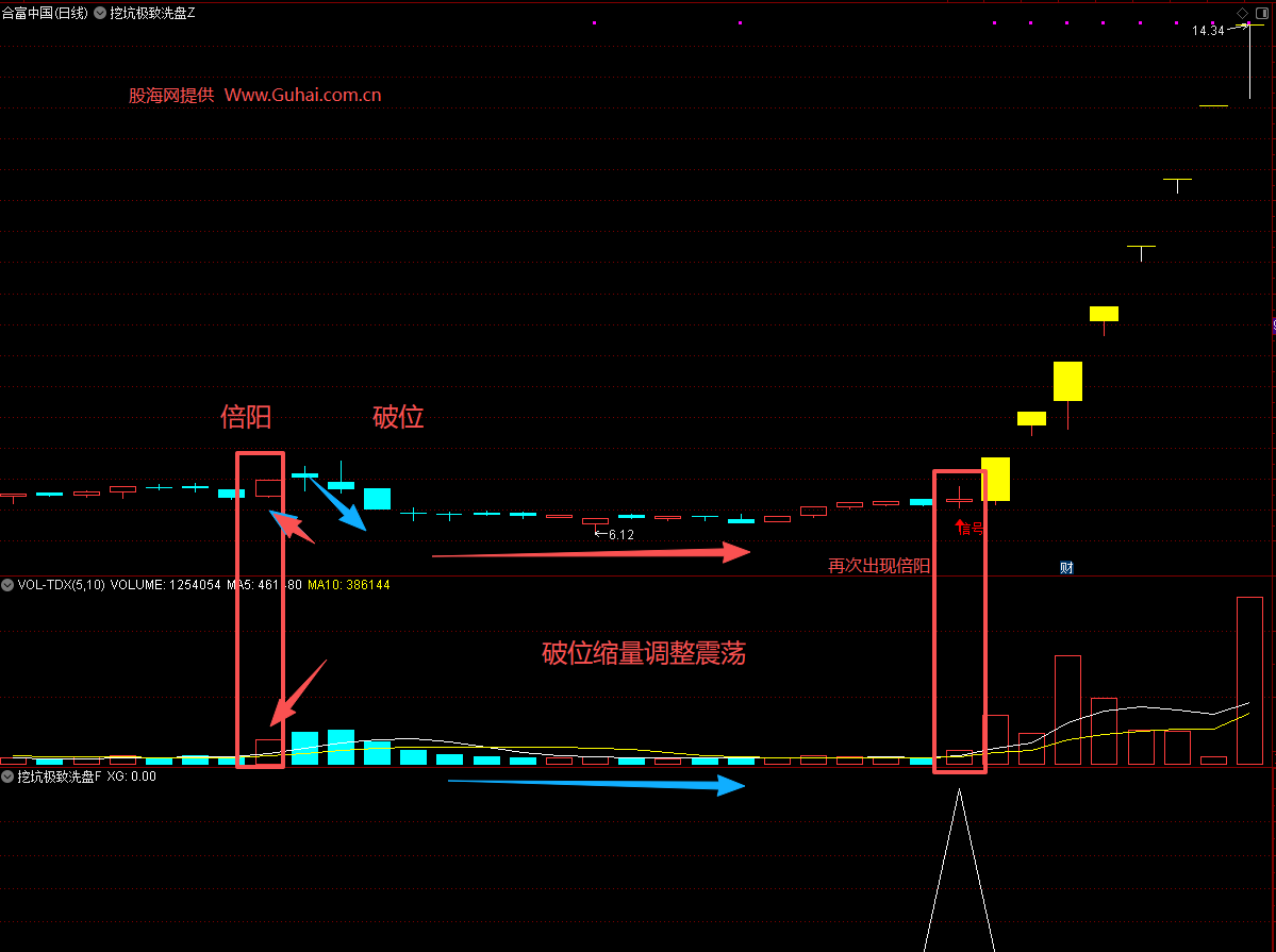 相关简介:倍量、挖坑、巨量阳强势洗盘!