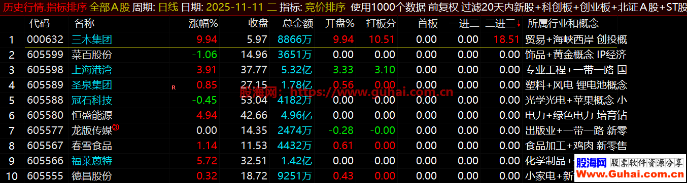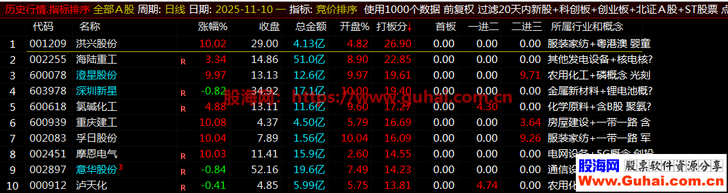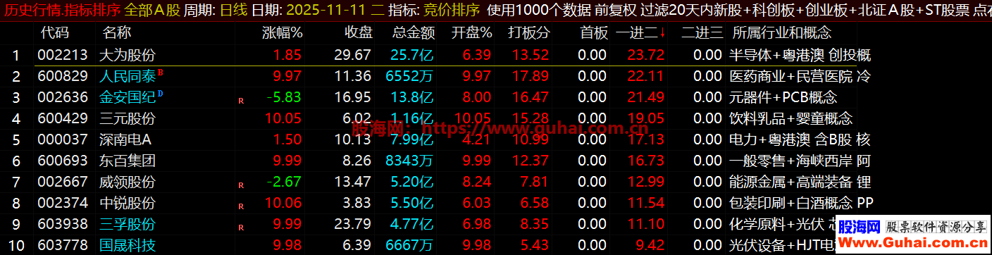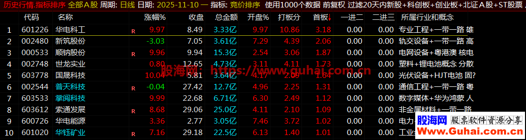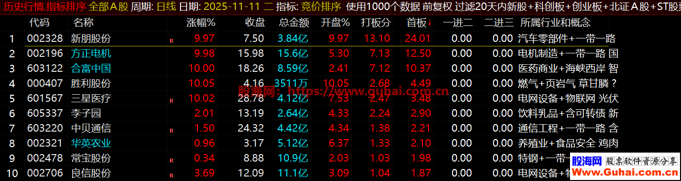 6、重点关注首板排序前三名、因为龙头股都是从首板开始,一进二、二进三排序可以参考当下的强势股。