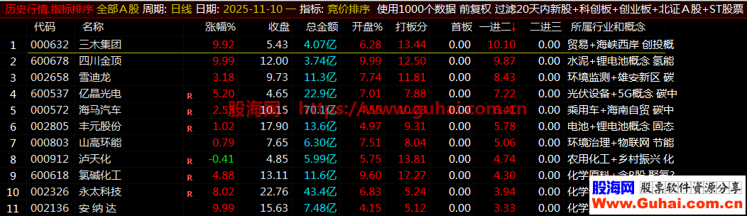 相关简介:【竞价排序首板】指标竞价排序打板分、首板、一进二、二进三