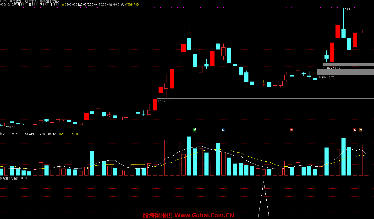 相关简介:本指标用于识别底部缩量十字星二次入场机会