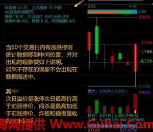 1、股性信息:股性信息是一个股票过去一年的活跃度的统计信息,如果一个票60天内没有涨停信息,则显示在K线面板的上方,内容是过去一年涨停次数和最后涨停距今的自然天数(不是交易日数)。