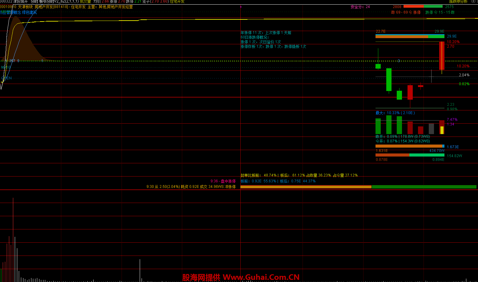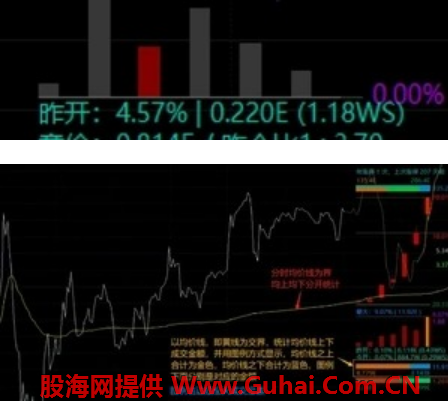 6、均价分隔统计图:当天成交量中,分时均价之上成交的金额和之下成交金额的对比图。图例最后面是全天总成交金额。