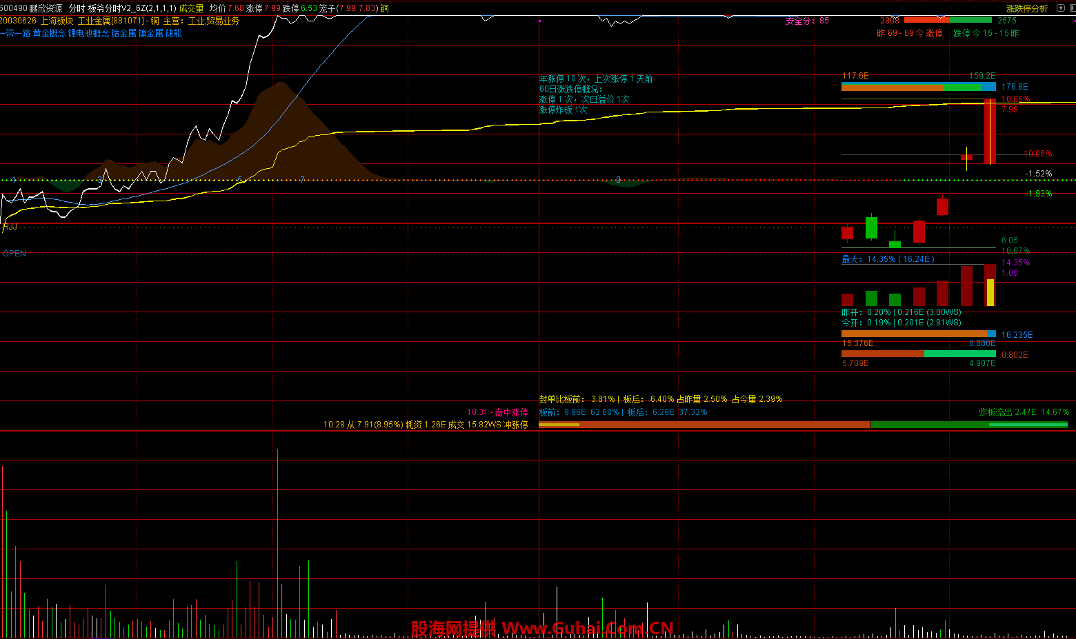 五、涨跌停数据仪表盘:当个股出现涨跌停时,涨跌停数据仪表盘会自动显示,并展示各种统计数据。