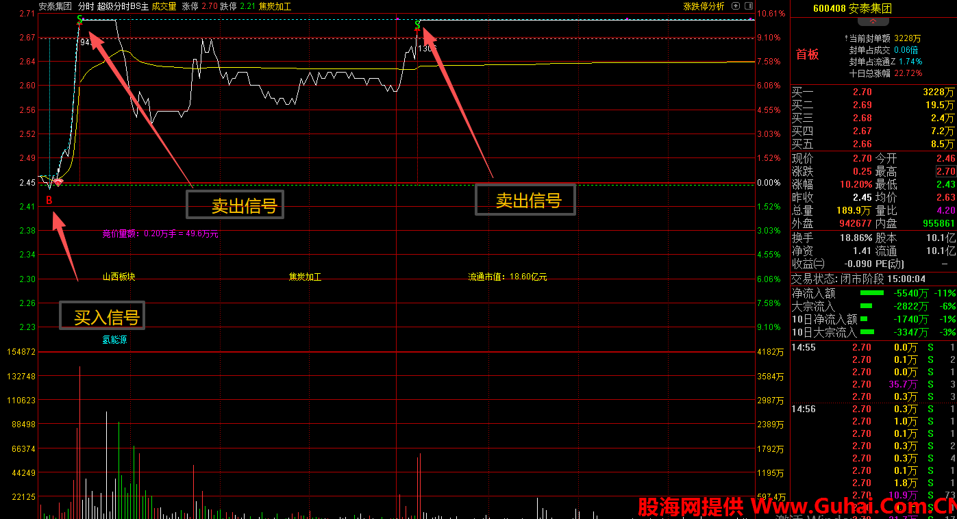 信号直观:红B绿S,直接标注于分时图上,买卖点一目了然,告别纠结。