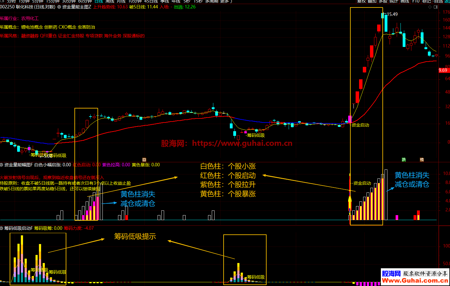 量柱的高度代表吸筹强度