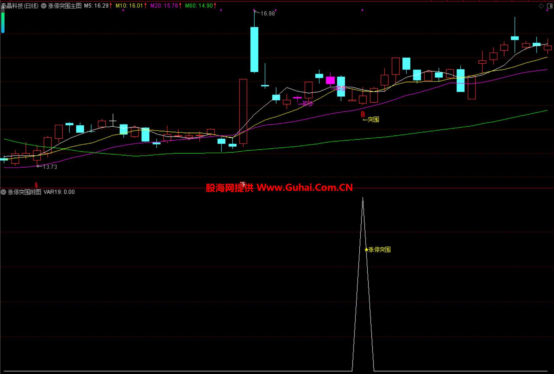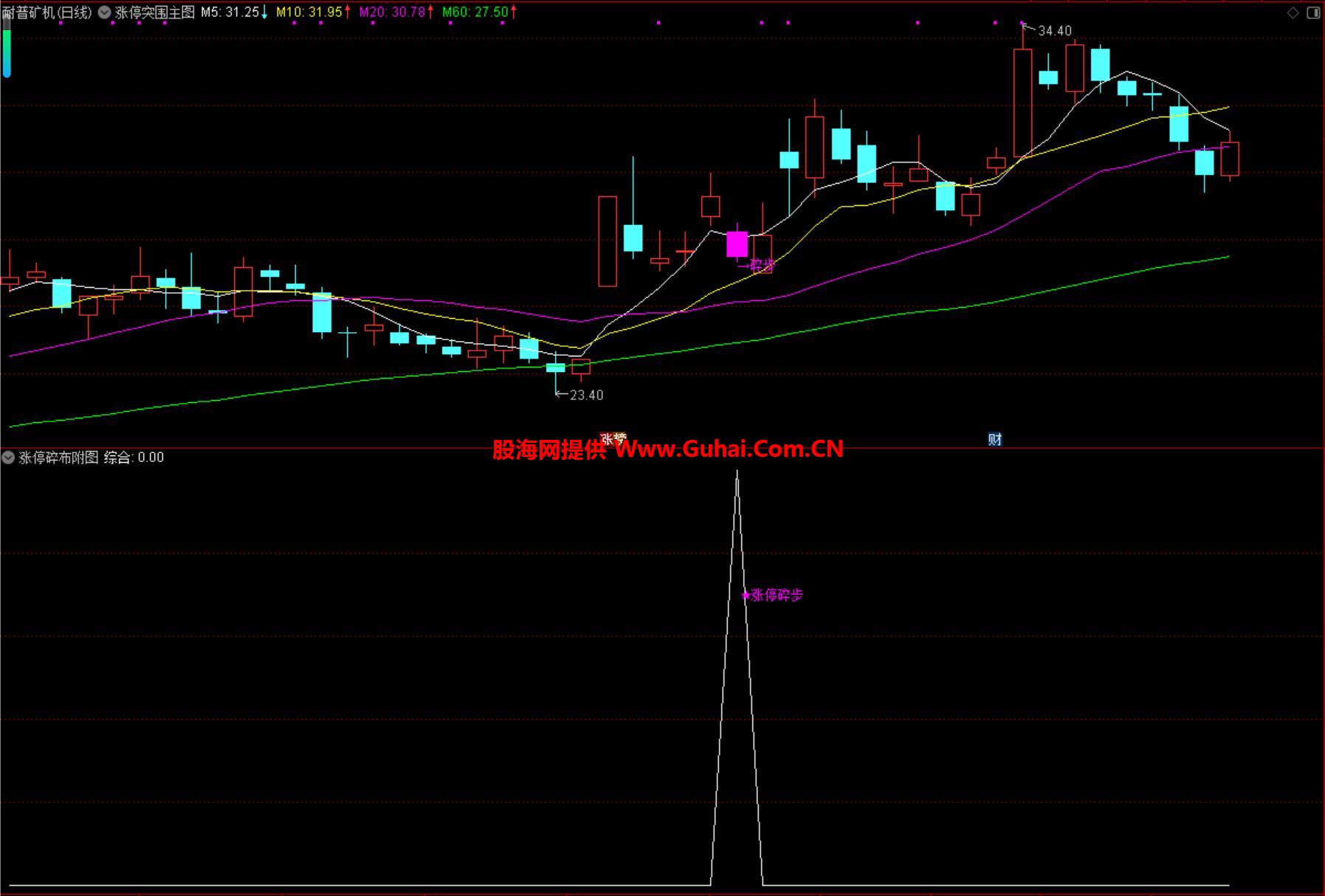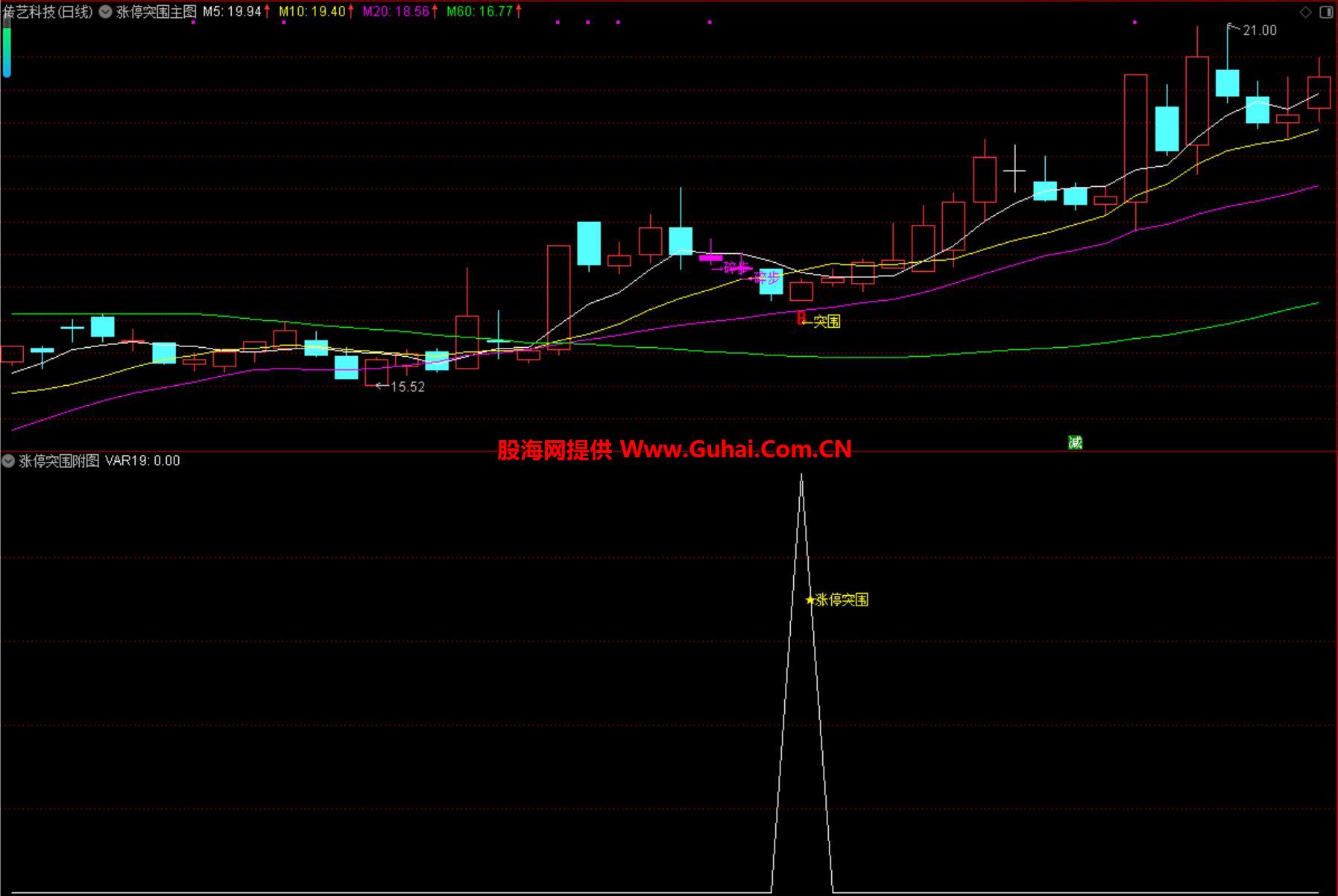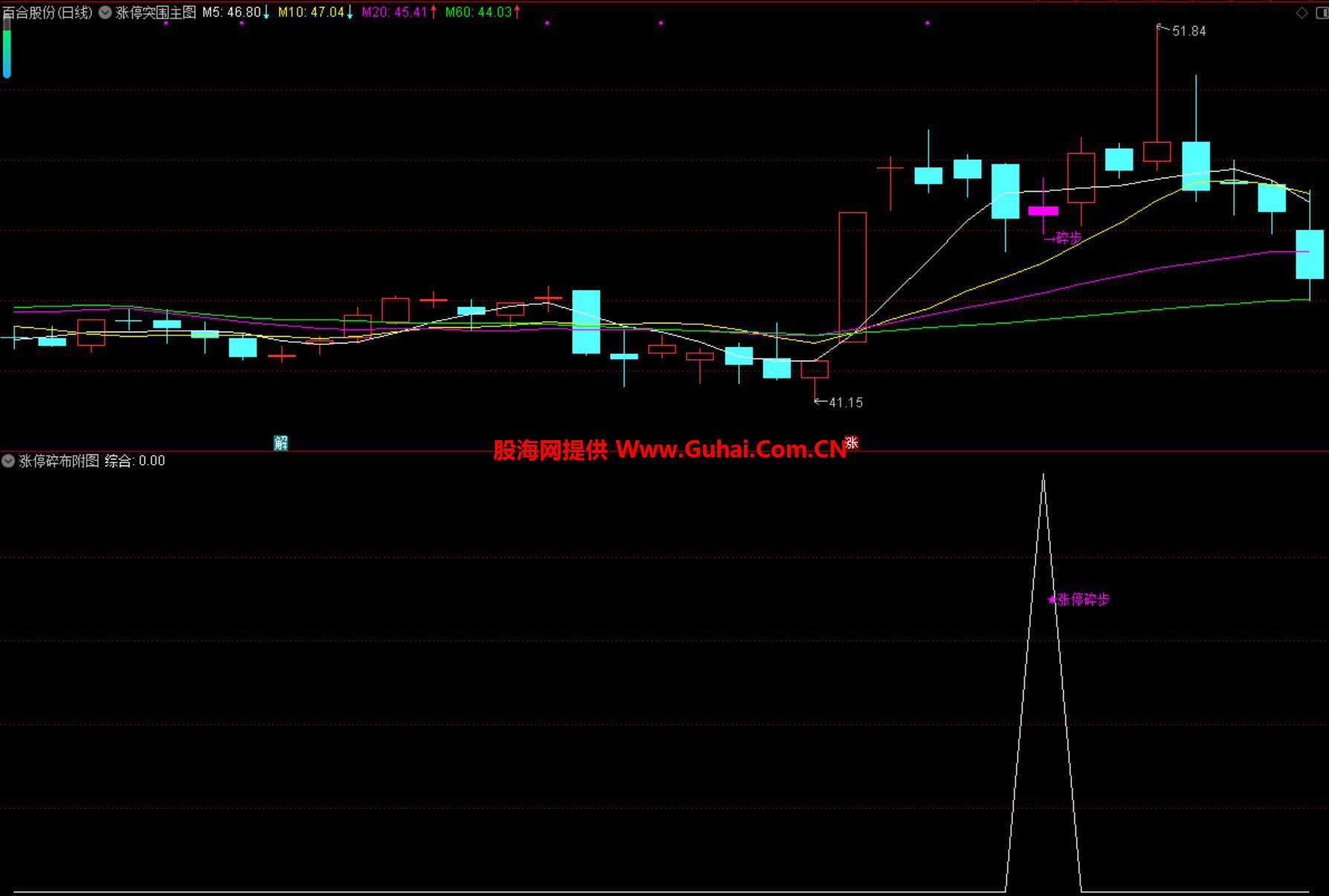 相关简介:【涨停突围碎布启动】主副图选股指标三信号均线粘合突破后的缩量再启动
