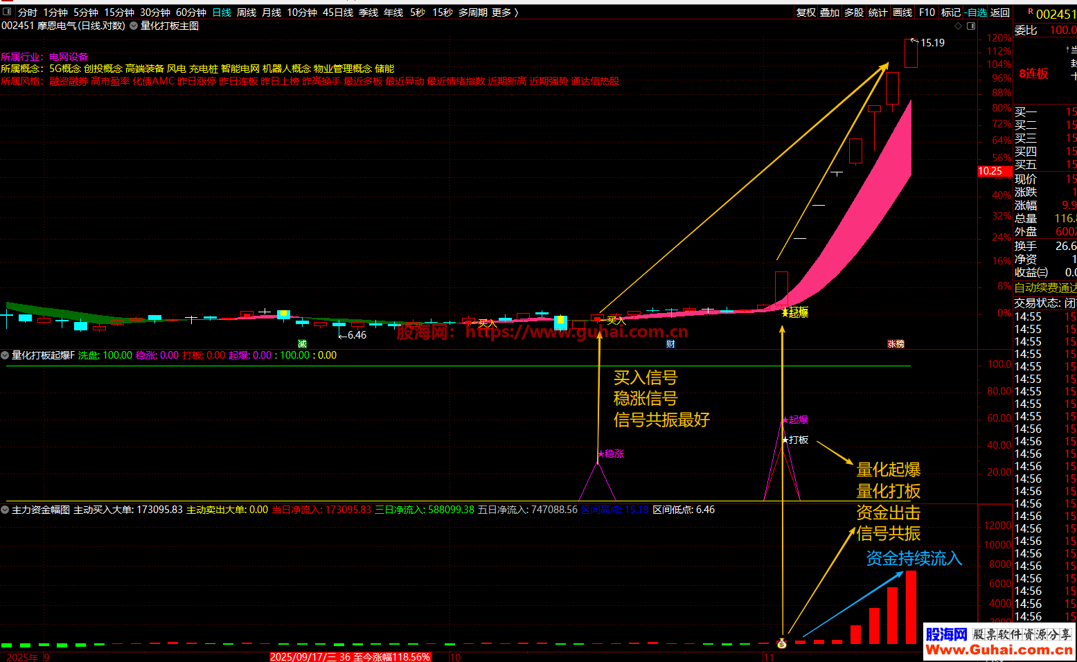 三、量化打板起爆幅图结合主力资金幅图指标操作: