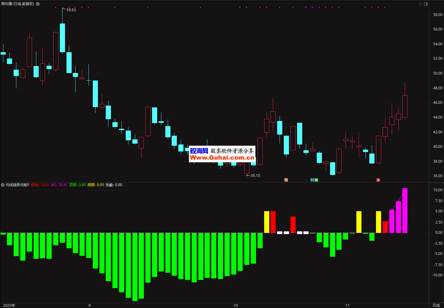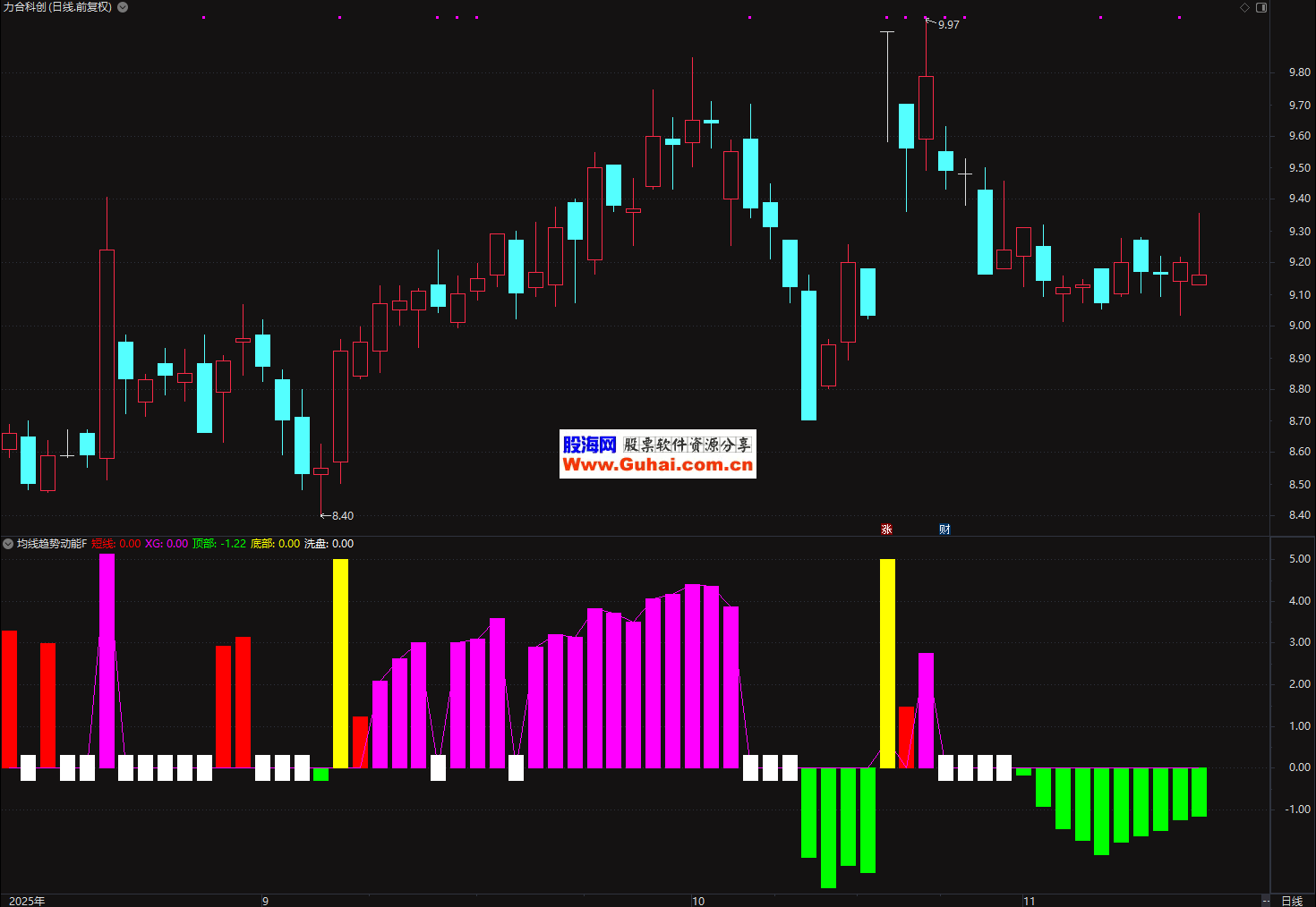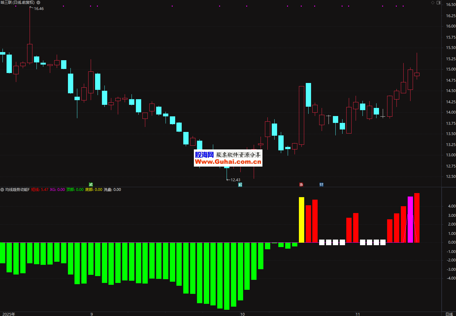 绿色信号:动能线跌破零轴时,表明进入调整阶段。