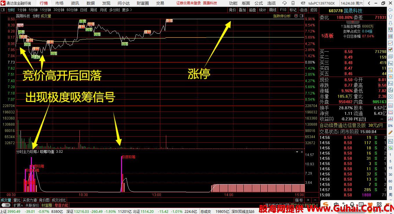 4.看好个股,盘中一直在震荡,不敢下手,等你反应过来的时候,突然拉升至涨停,是否有提前的“预警”呢?