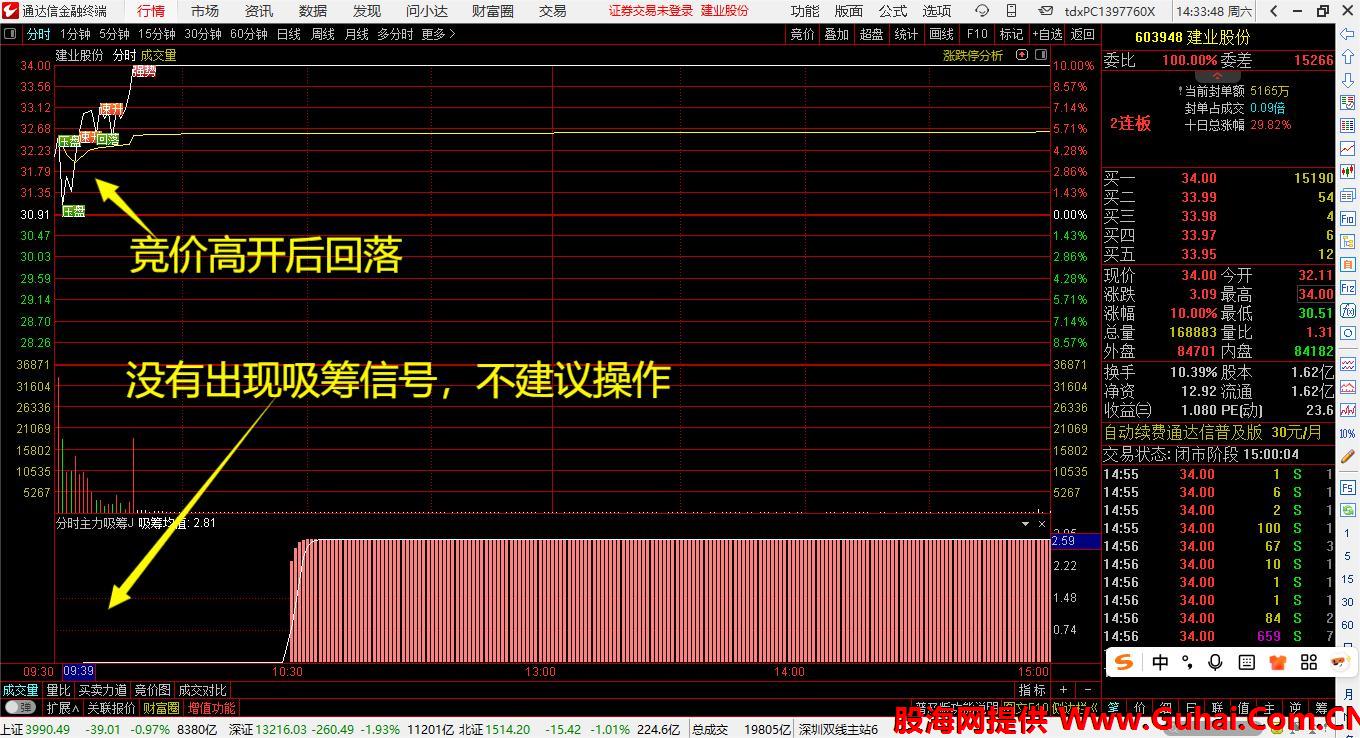 (3)案例3:竞价出个股未出现信号,即便涨停也不建议买入