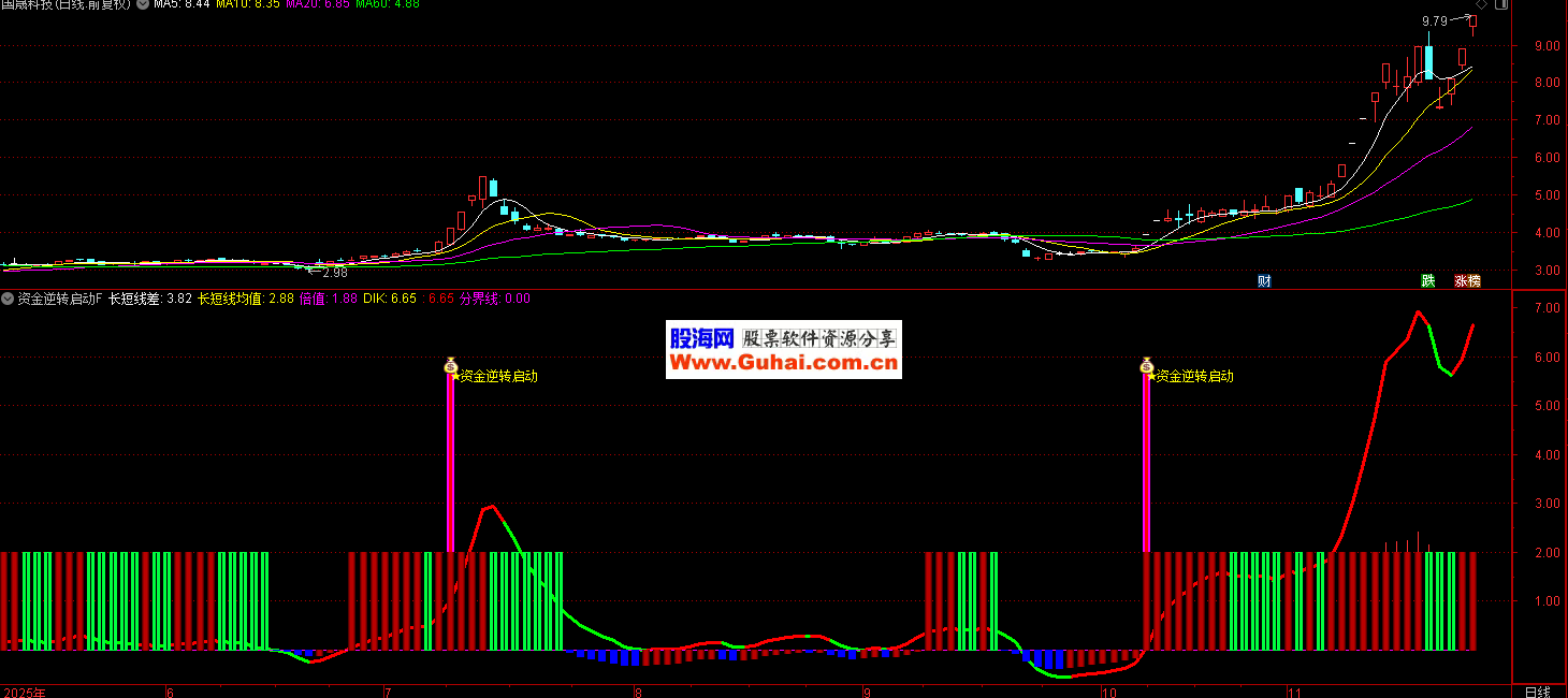 一、通达信〖资金逆转启动〗副图/选股指标 基于均线差值的资金逆转信号 源码
