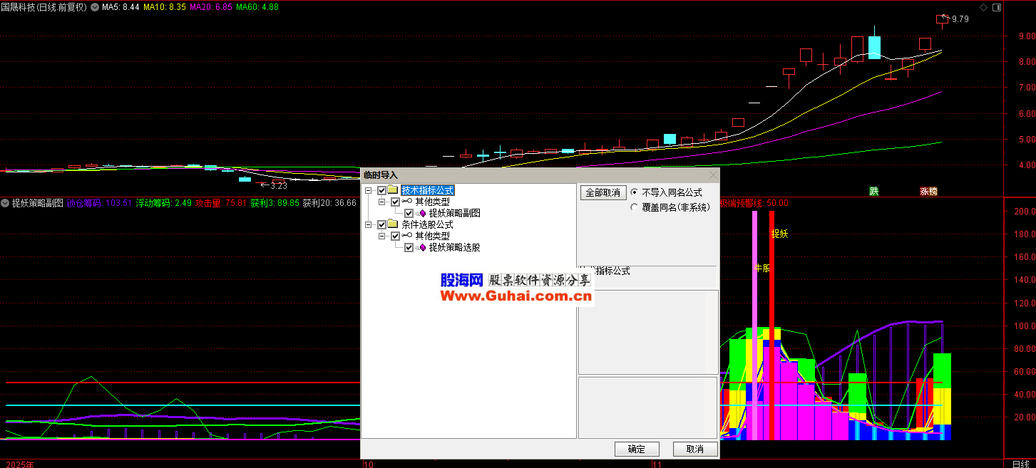 二、通达信〖策略捉妖〗副图/选股指标 识别主力资金深度介入的股票 源码 指标通过分析不同价位区间的持股比例变化,识别主力资金深度介入的股票。核心功能是监控"捉妖线"突破关键阈值来捕捉强势启动信号,并用筹码集中度判断锁仓力度。操作策略是当指标突破第一道预警线时关注,突破第二道预警线时视为强烈买入信号。