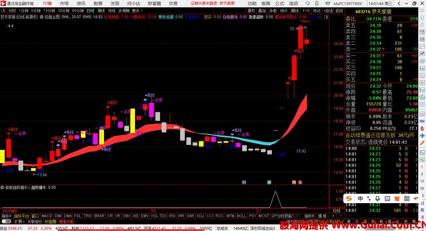 相关简介:新版趋势擒牛策略是在原基础上加入红线系统、秘籍趋势、过滤功能等,选出个股更加具体爆发性,能准备把握个股超跌后起爆点。出票数量充裕,而且多数在3%左右触发后高概率涨停;次日有很好出货机会;策略为非原创,优化后(新版)远远由于其原创版本。