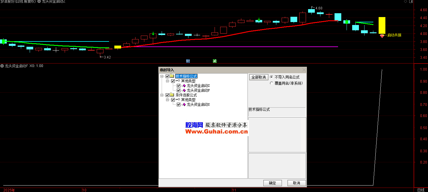 核心逻辑 指标本质是「龙头形态选股」与「游资资金启动选股」的双条件共振,通过「趋势强度 + 资金动能」的双重验证,提高选股确定性: