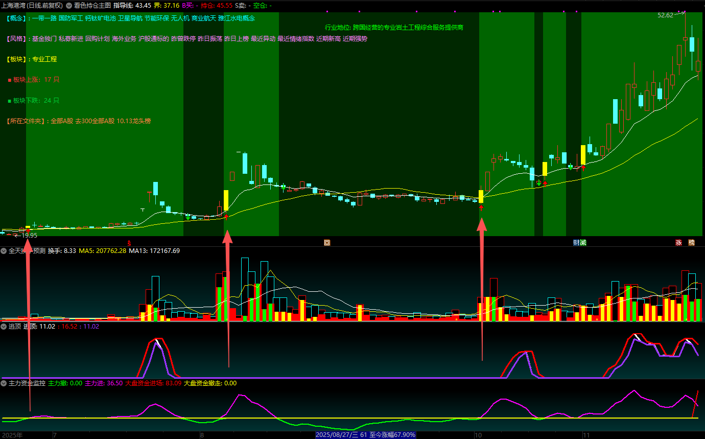 ★“指导线”与“界”的组合,为您划定市场的关键支撑与阻力区域,帮助您在复杂多变的市场中找到方向。“主力进”与“主力撤”指标,让您洞察主力资金的动向,提前布局,抢占先机。