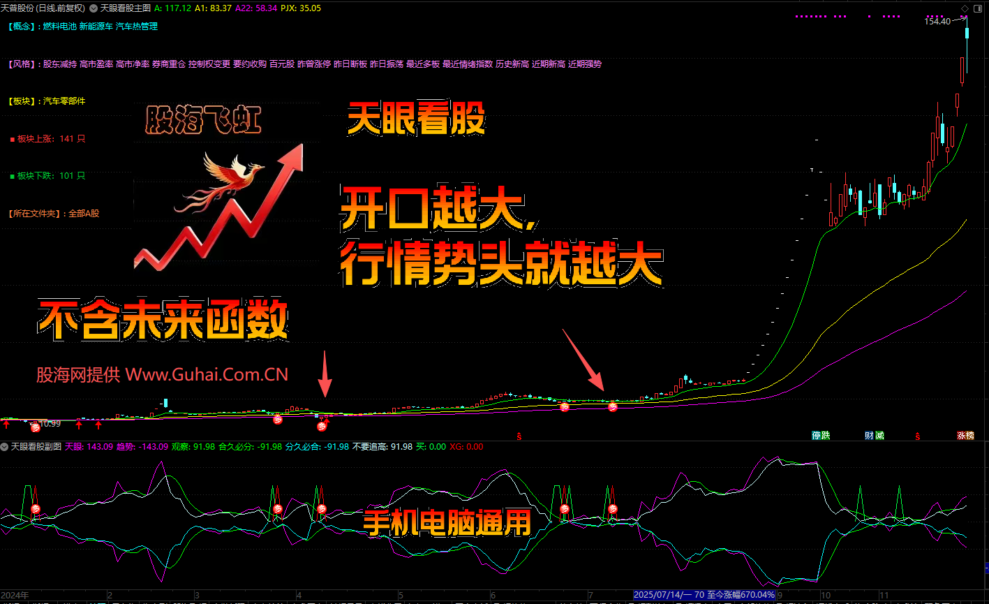 2、通过复杂的算法和精准的计算,从海量数据中提炼出关键信号。“天眼”“趋势”等指标,如同您投资路上的明灯,清晰洞察股价的微妙变化;“买”“XG”等信号提示,更是为您明确指出潜在的买入良机。