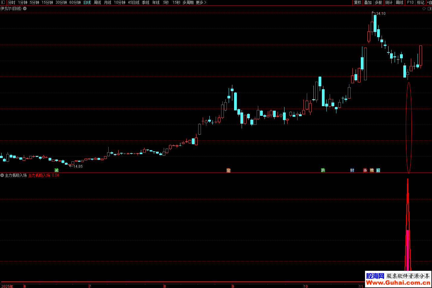 相关简介:主要用于识别股票市场中主力资金低位吸筹的入场信号