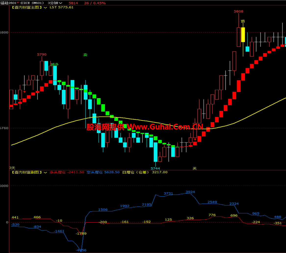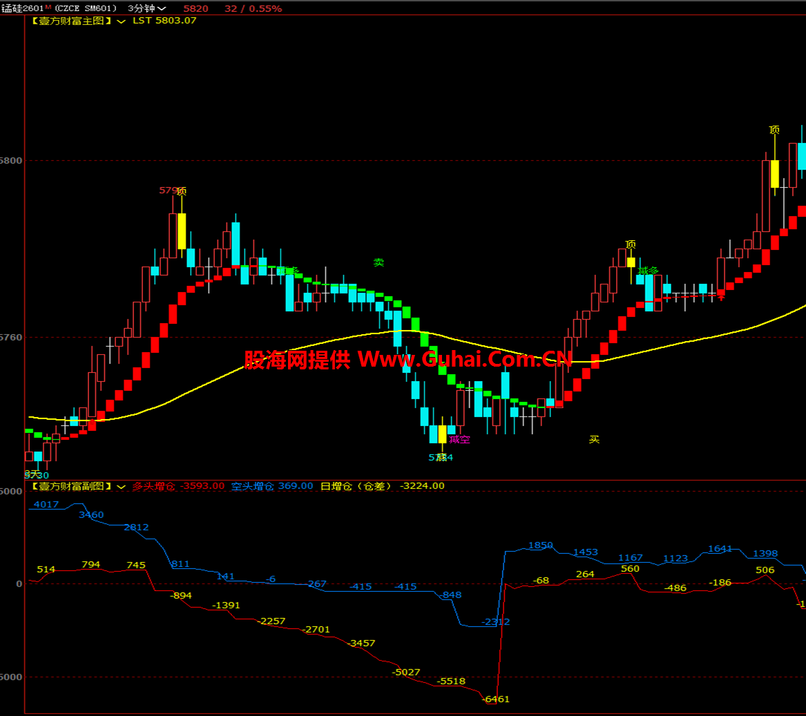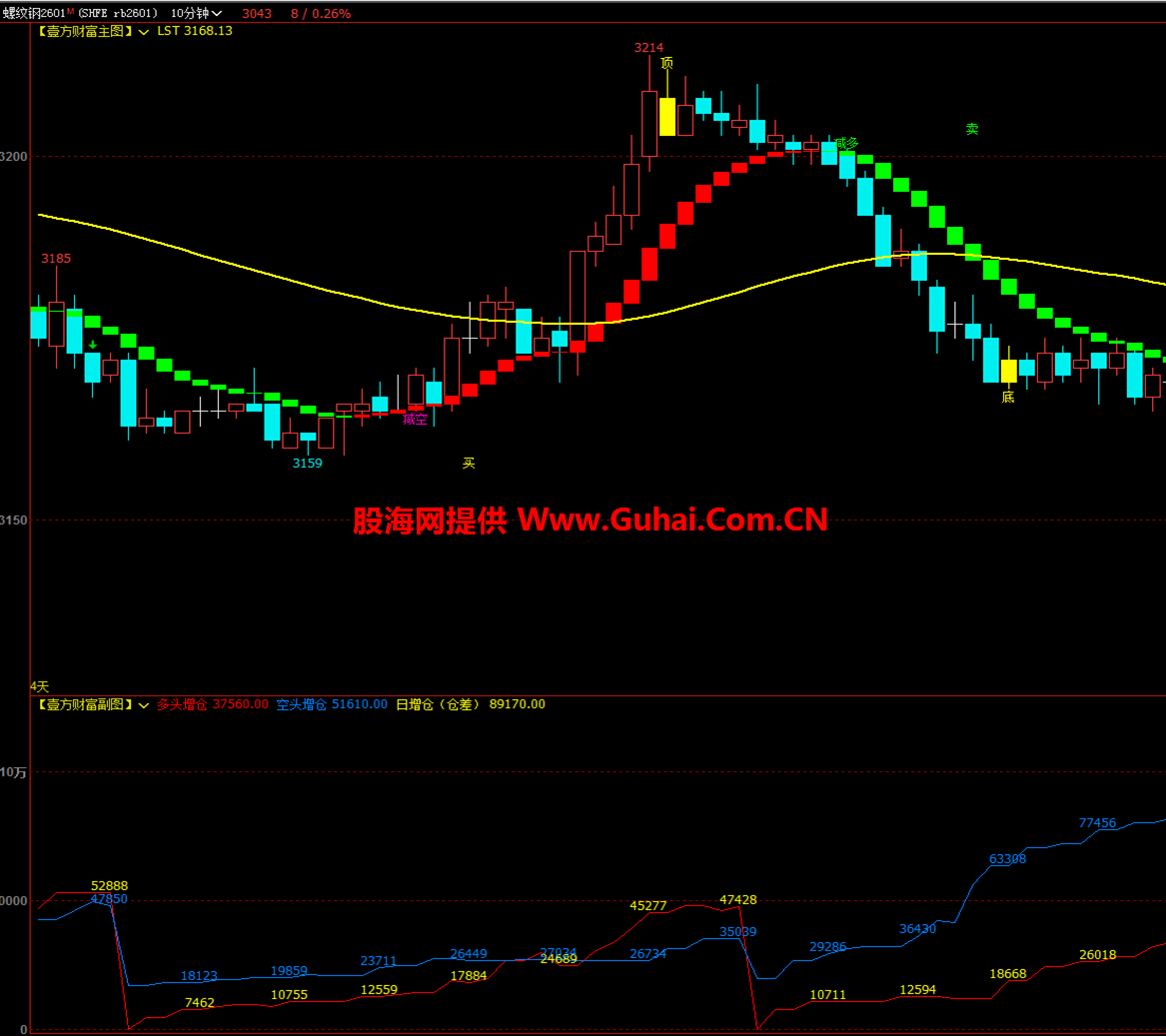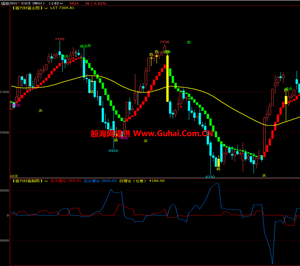 1,壹方财富主图,红柱出现做多平空,绿柱出现做空平多,出现文字顶底参考减仓,出现减多减空,参考减仓!