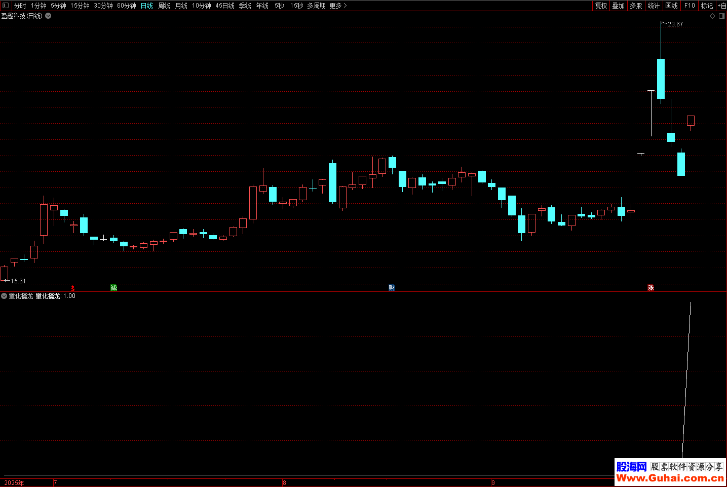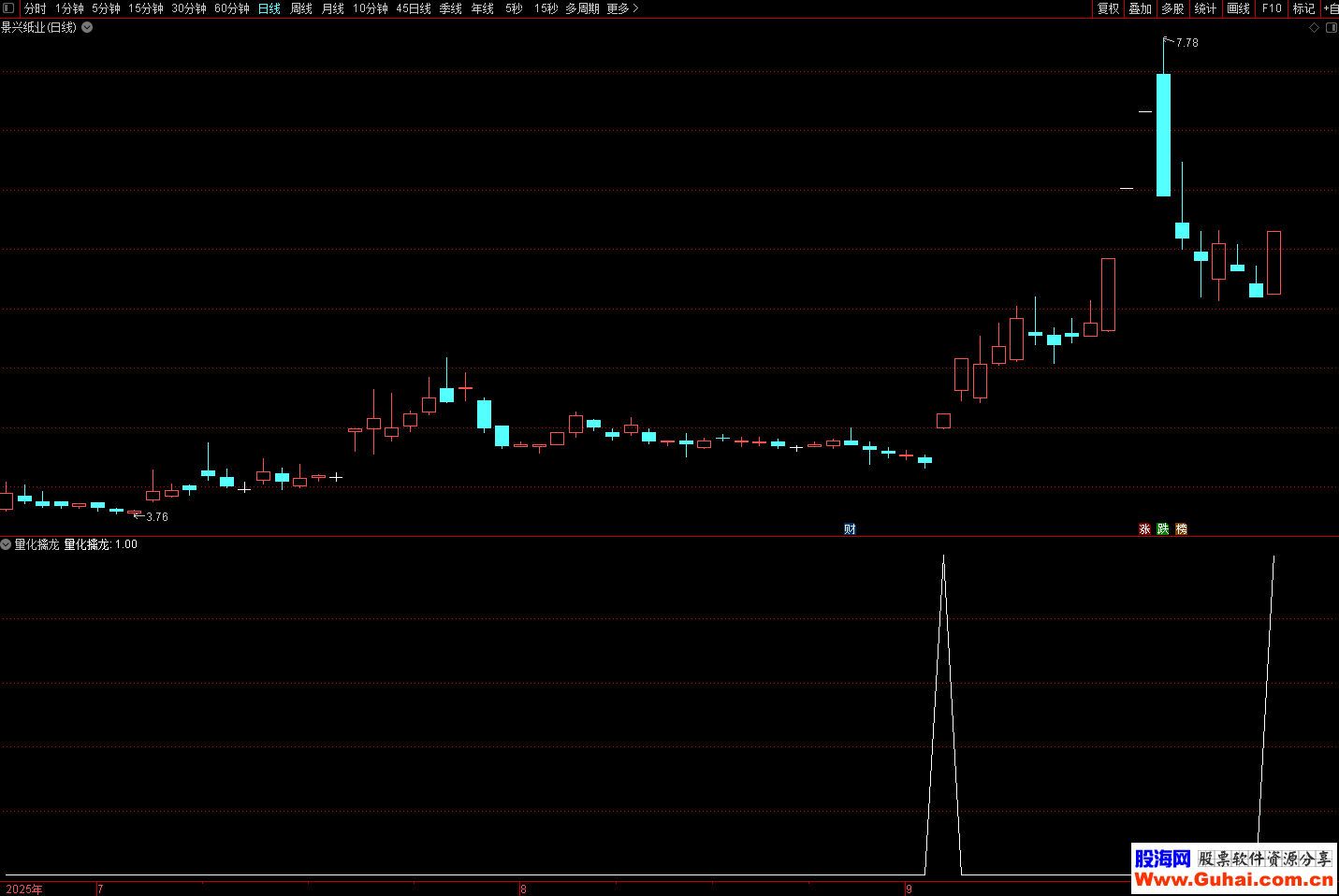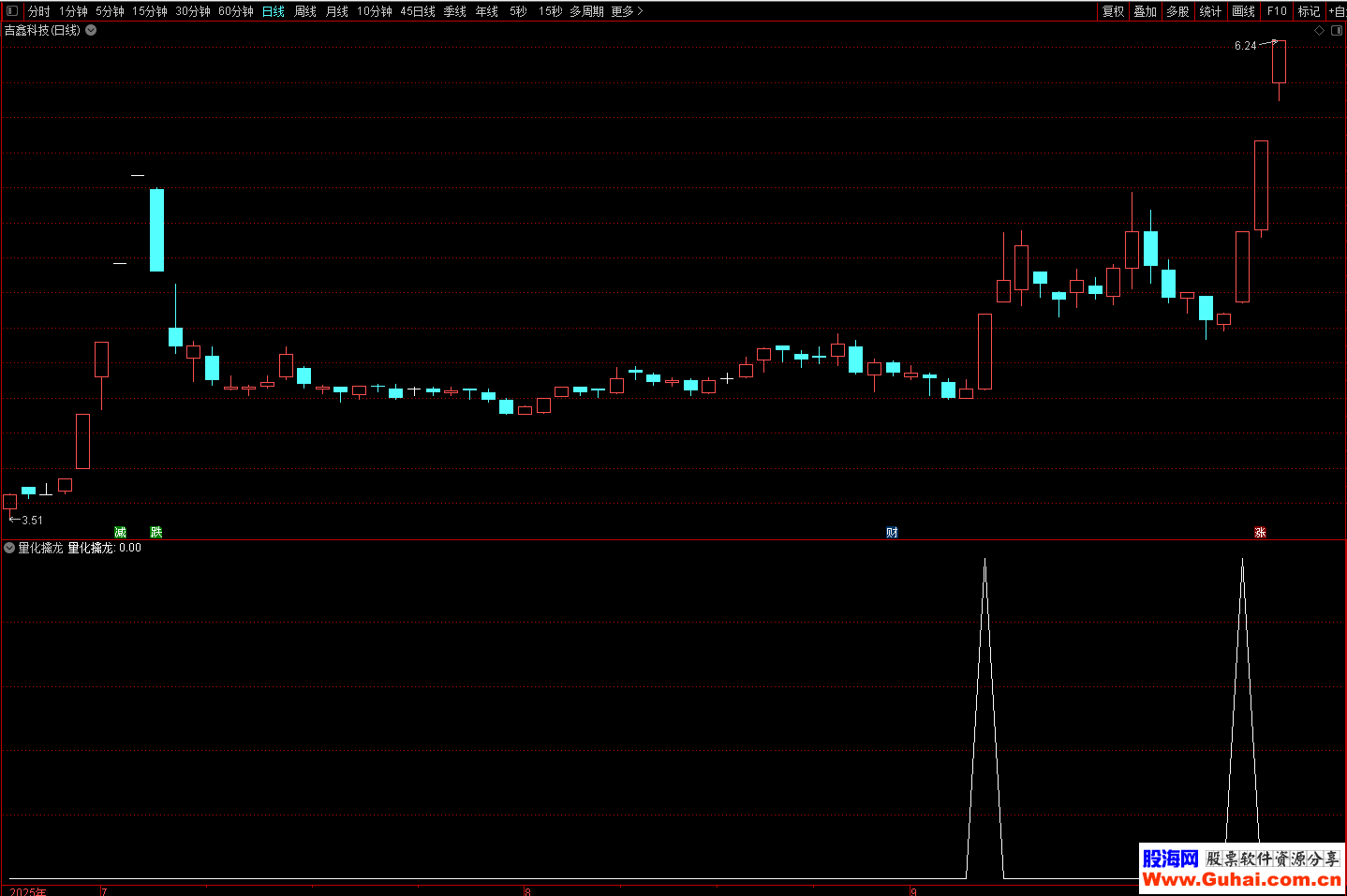 1.指标核心设计目标是捕捉股价在特定技术条件下所引发的强势上涨行情,尤其是那些具备突破或启动特征的“龙头股”潜力股。