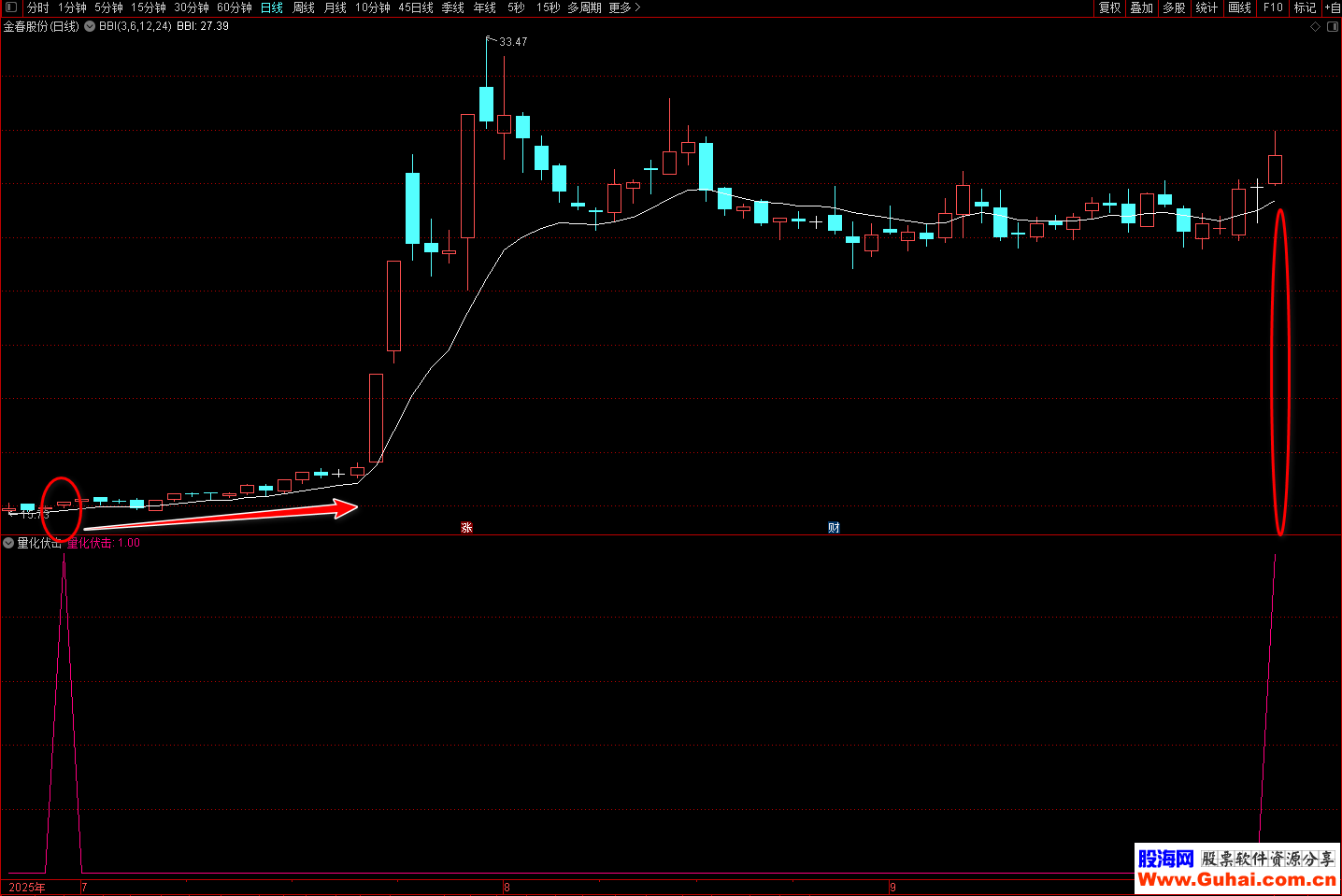 1.指标的核心是识别股价结束盘整后,短期动能强劲突破长期压力线的关键节点,旨在捕捉新一轮趋势的早期启动信号。