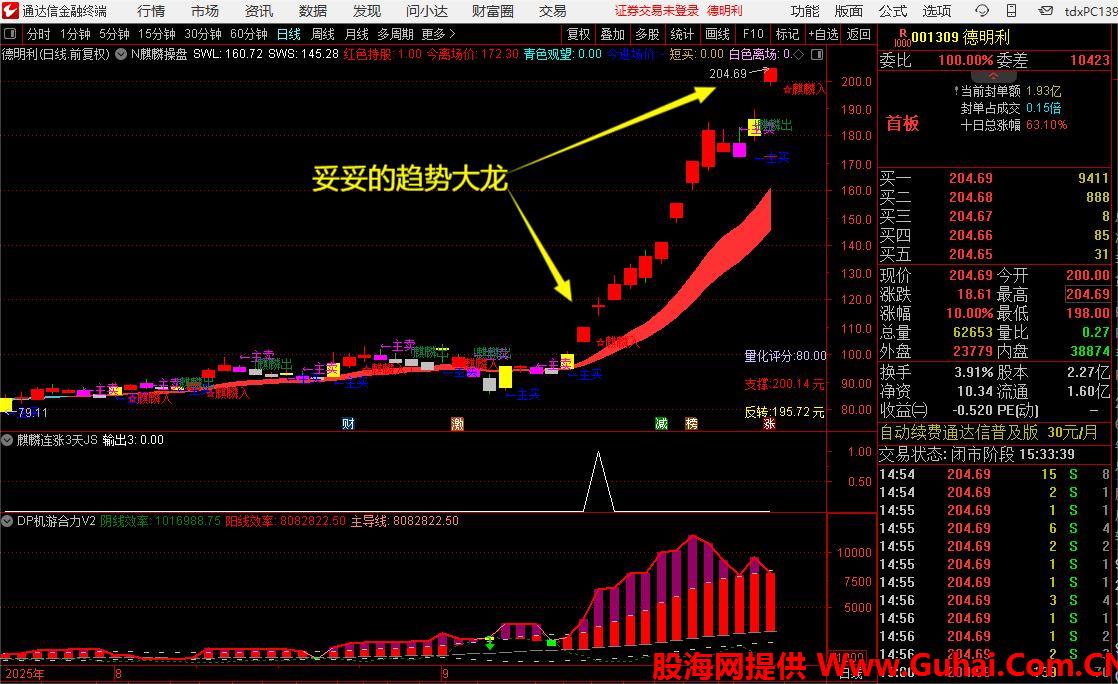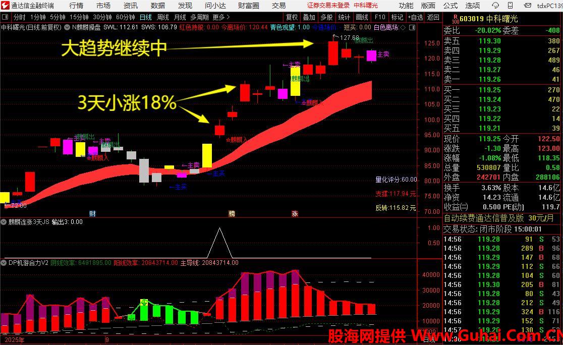 2.上车方式:触发信号当日或次日逢低进入。(可借助高抛低吸判断分时买入点,它是通达信平台免费使用指标)