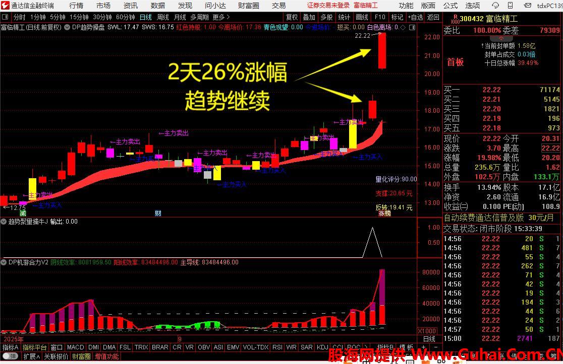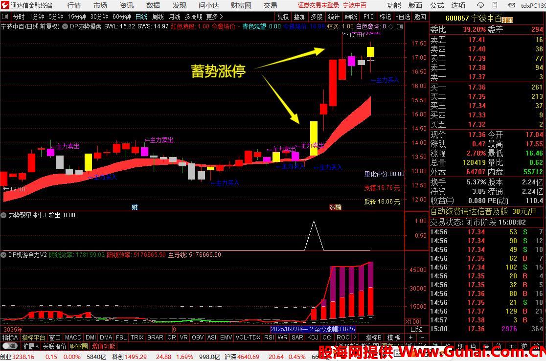 2.上车方式:触发信号当日或次日逢低进入。(可借助高抛低吸判断分时买入点,它是通达信平台免费使用指标)