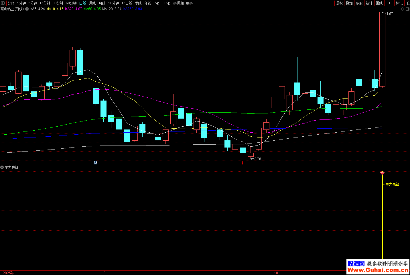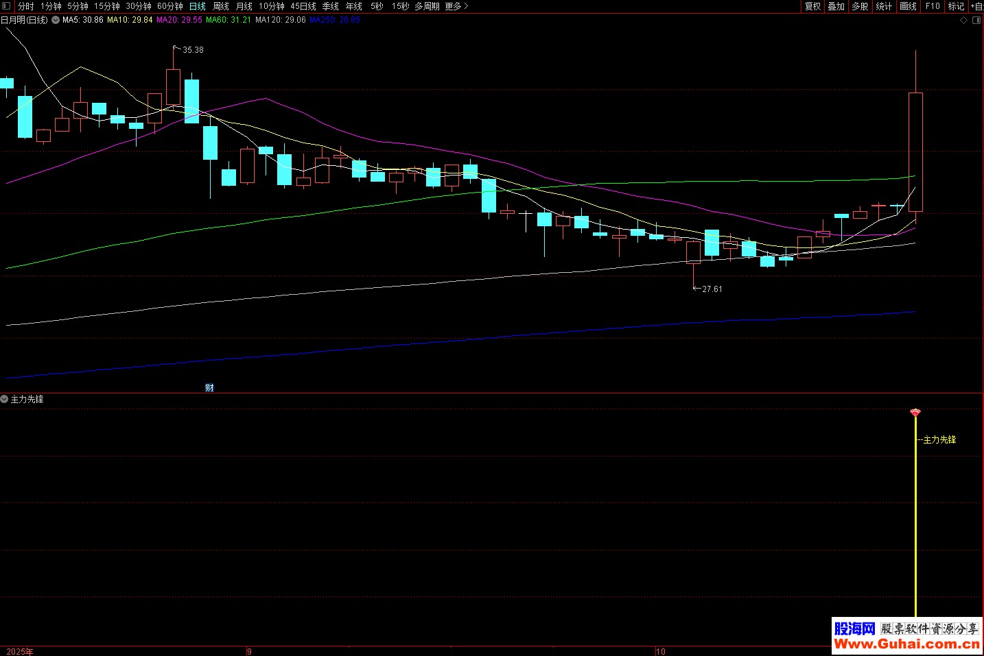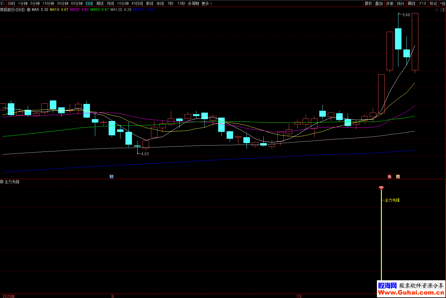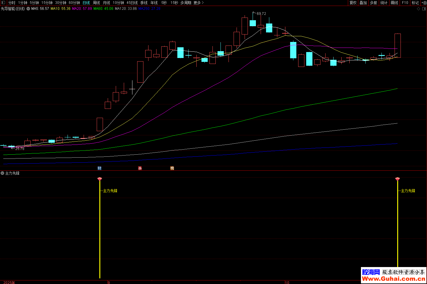 信号生成:当以上两个条件同时满足,并且在一定周期内此类信号首次出现时,触发最终的“主力先锋”信号。