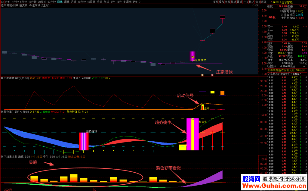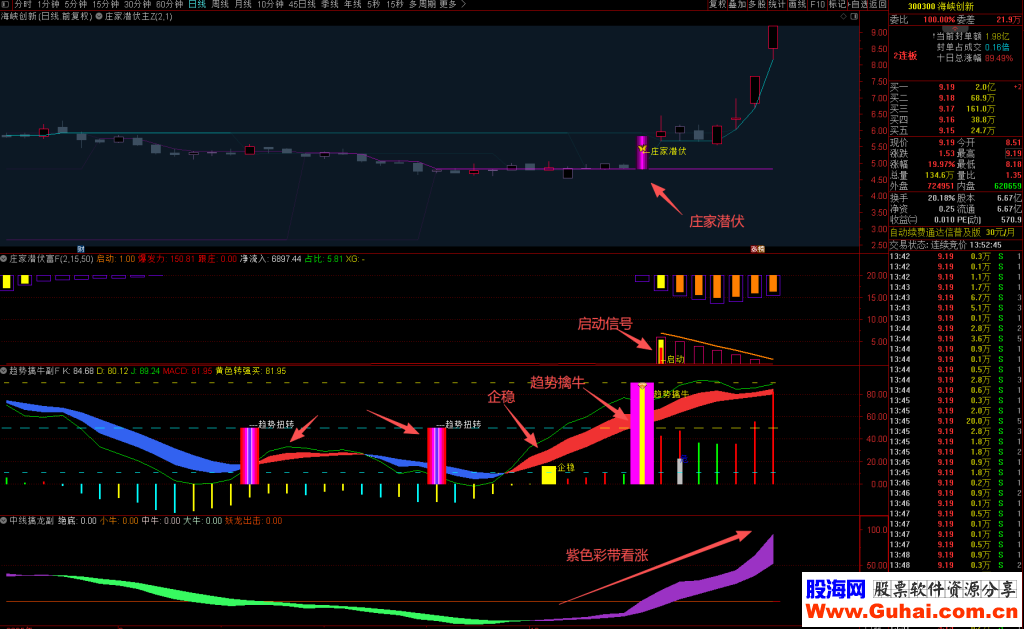 通达信【庄家潜伏】1主3副9选股 精品新作 庄家潜伏 扭转乾坤 顺势擒牛 启动抓妖 稳拿主升波段 中线擒妖龙