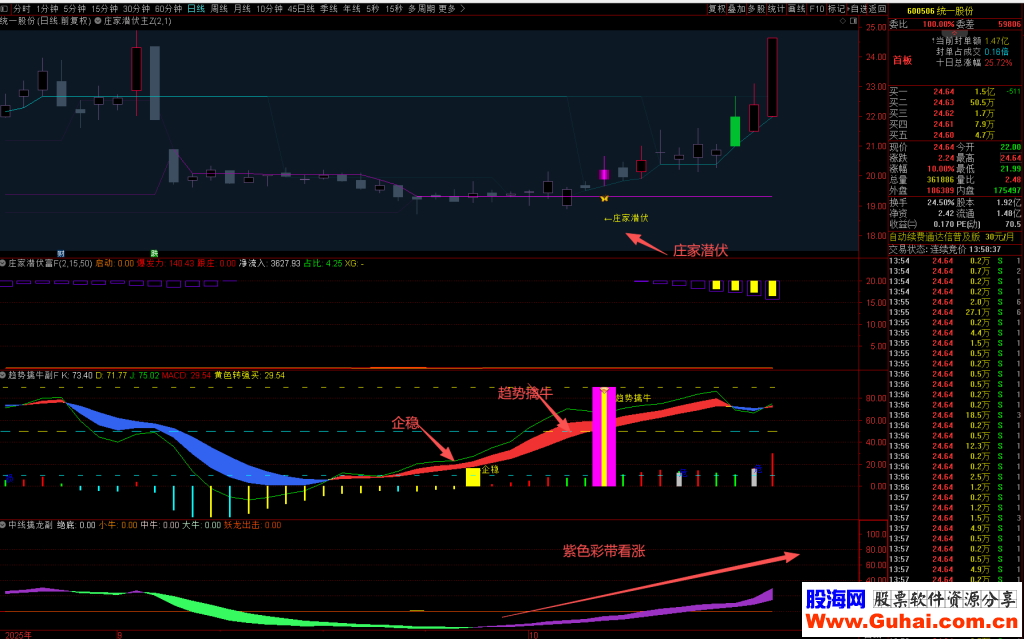3、出现大牛、妖龙为、绝底为极限超跌信号,成功率高,可以作为低吸信号