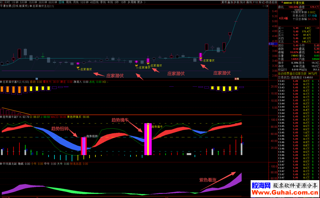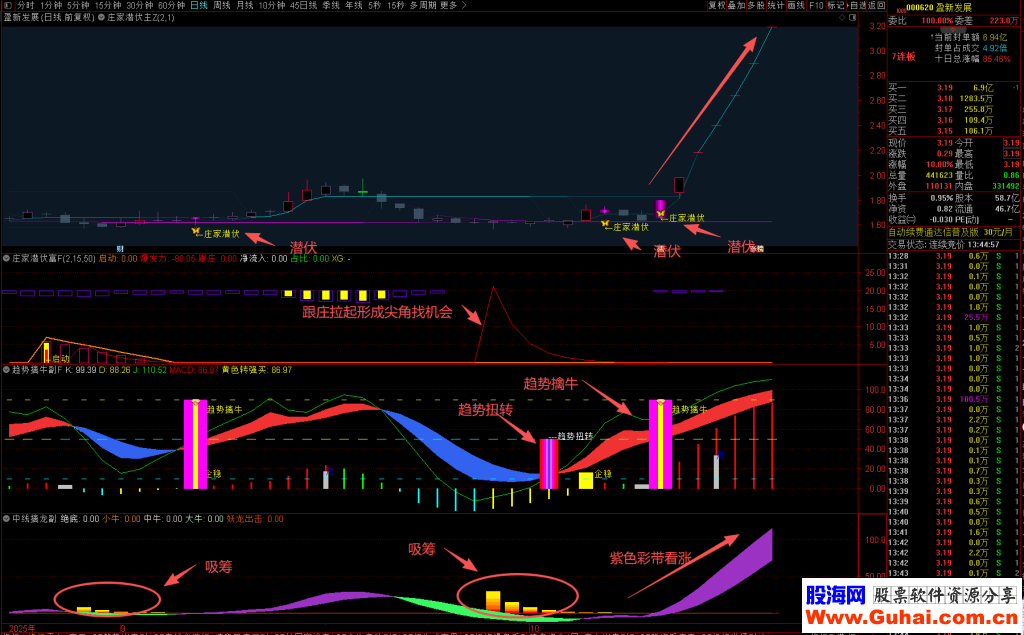 1、主图只设置了一个信号就是庄家潜伏,信号出票结合趋势判断成功率很高