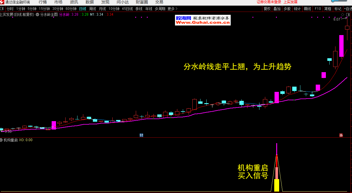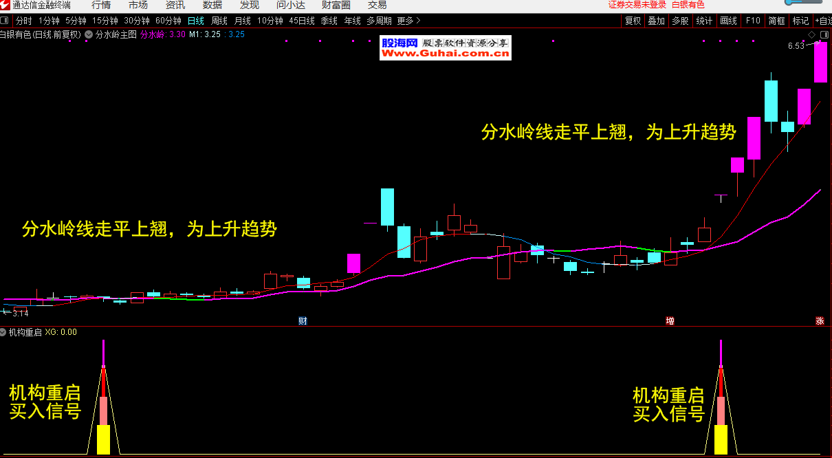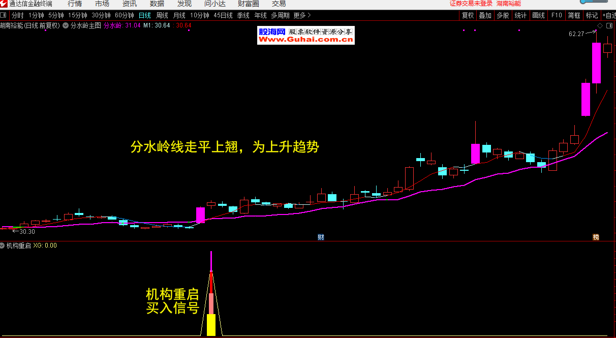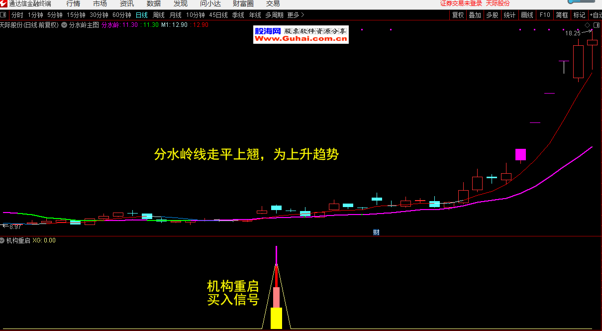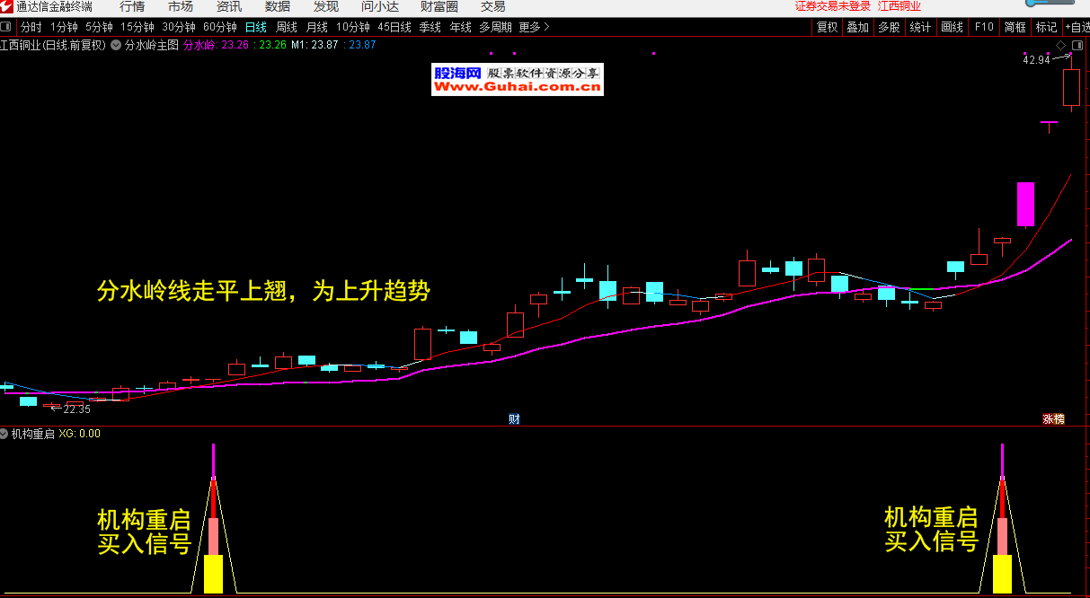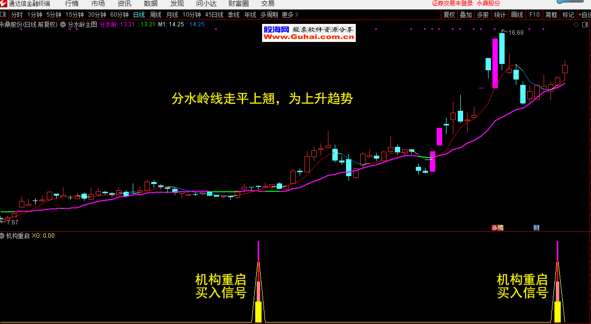 通达信 机构重启副图带选股公式/分水岭主图公式 无未来函数 源码文件分享
