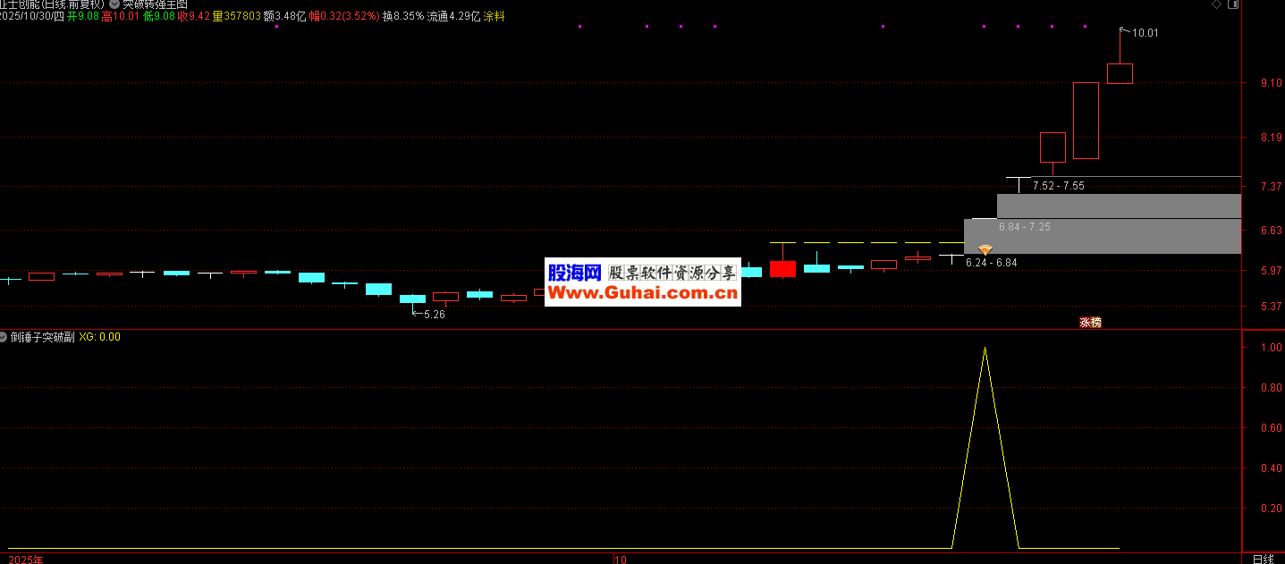 通达信〖倒锤子突破〗识别股价在长期窄幅波动后的突破形态 主副图/选股