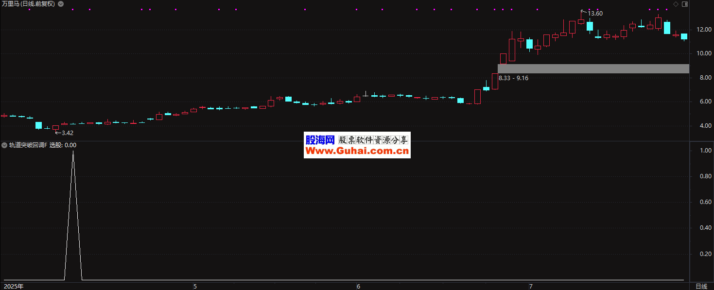 指标主要用于识别特定股票在突破关键价位后的回调买入机会。