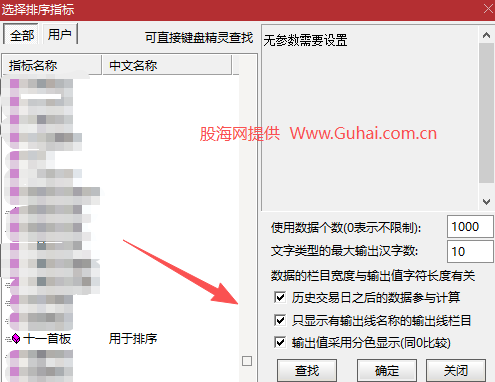 指标:电脑端可用的排序指标(亦可作为副图使用),以及手机端适配的选股指标。