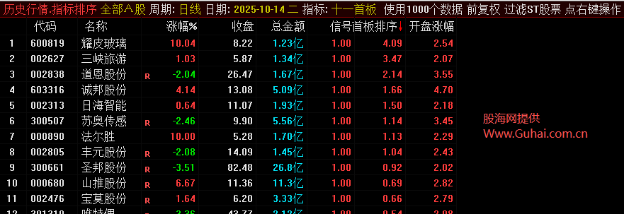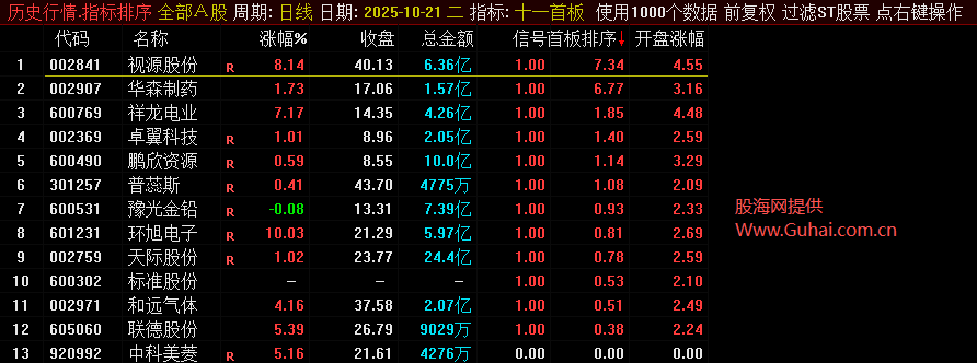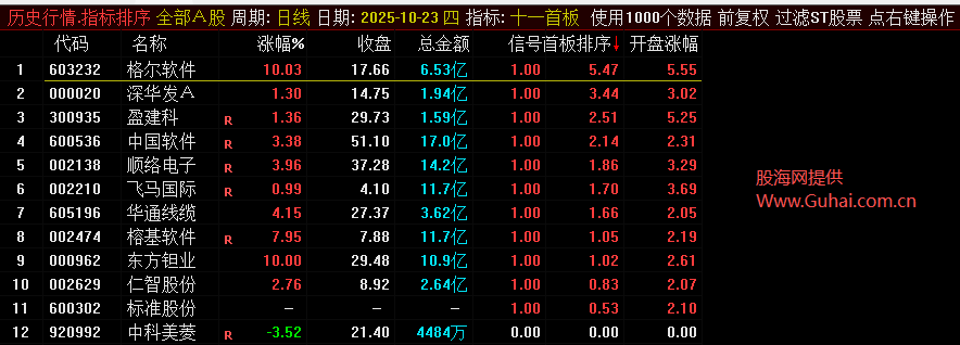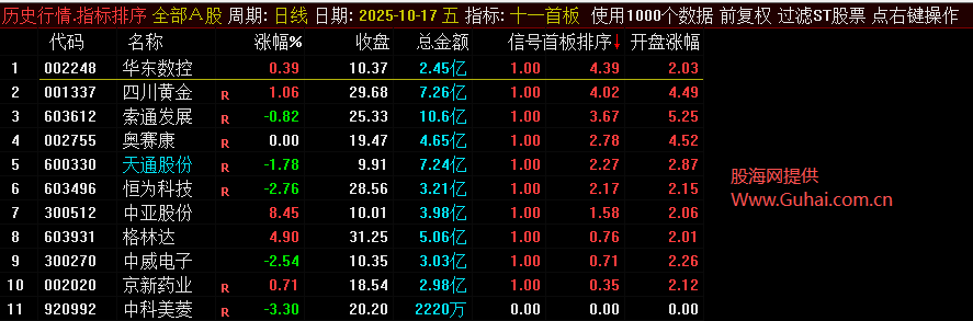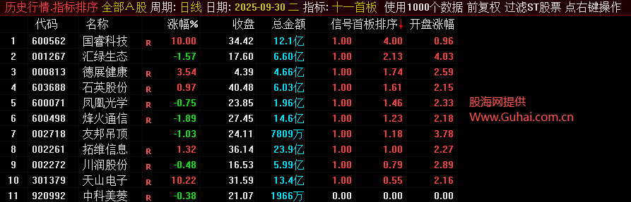 值得注意的是,排序结果一旦生成,全天信号保持固定,不会出现漂移情况。