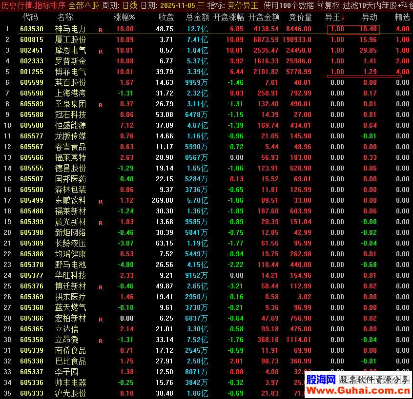 排除干扰: 自动过滤掉ST股、新股、停复牌股等特殊情况的干扰,专注于正常的交易品种。