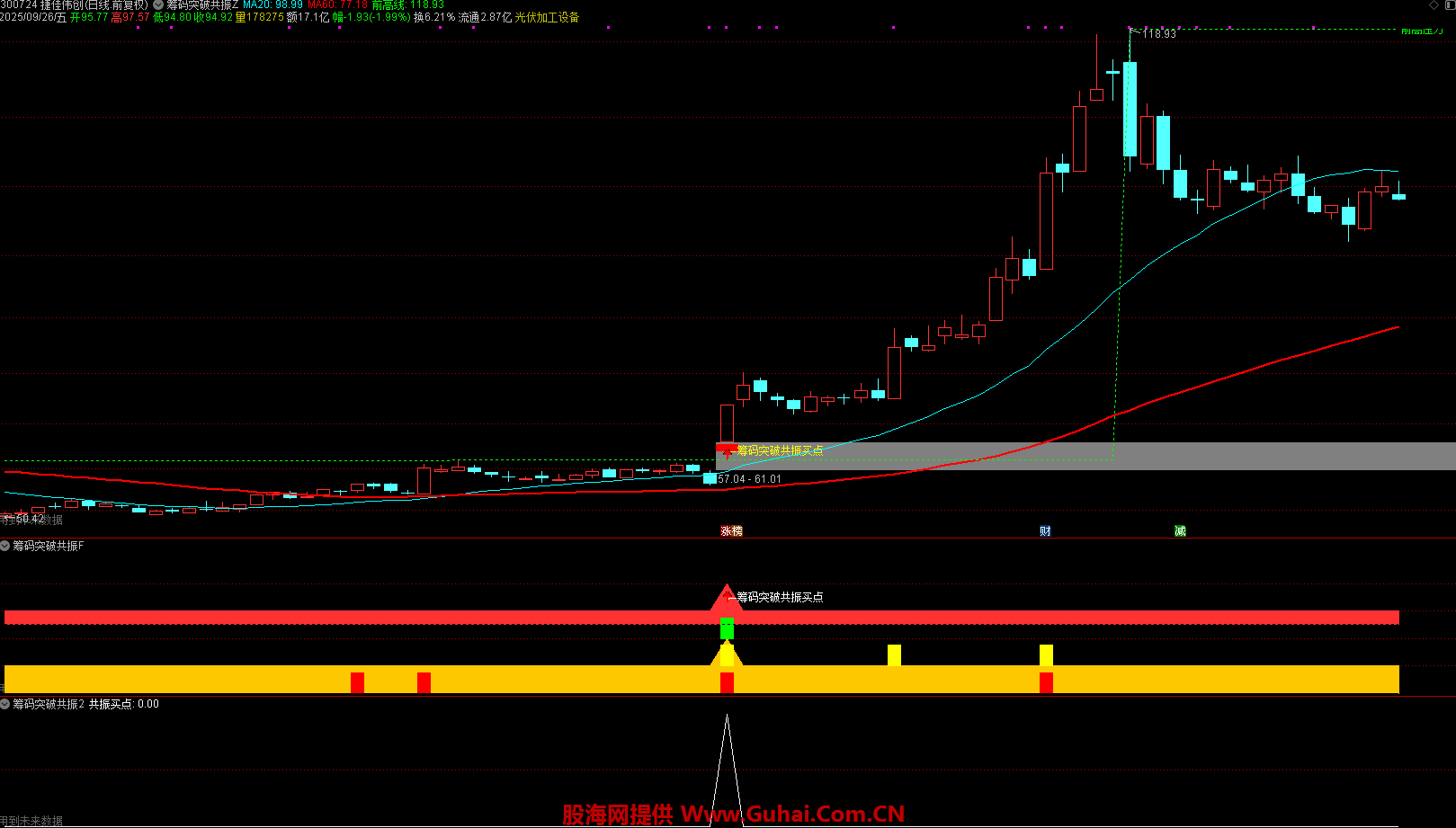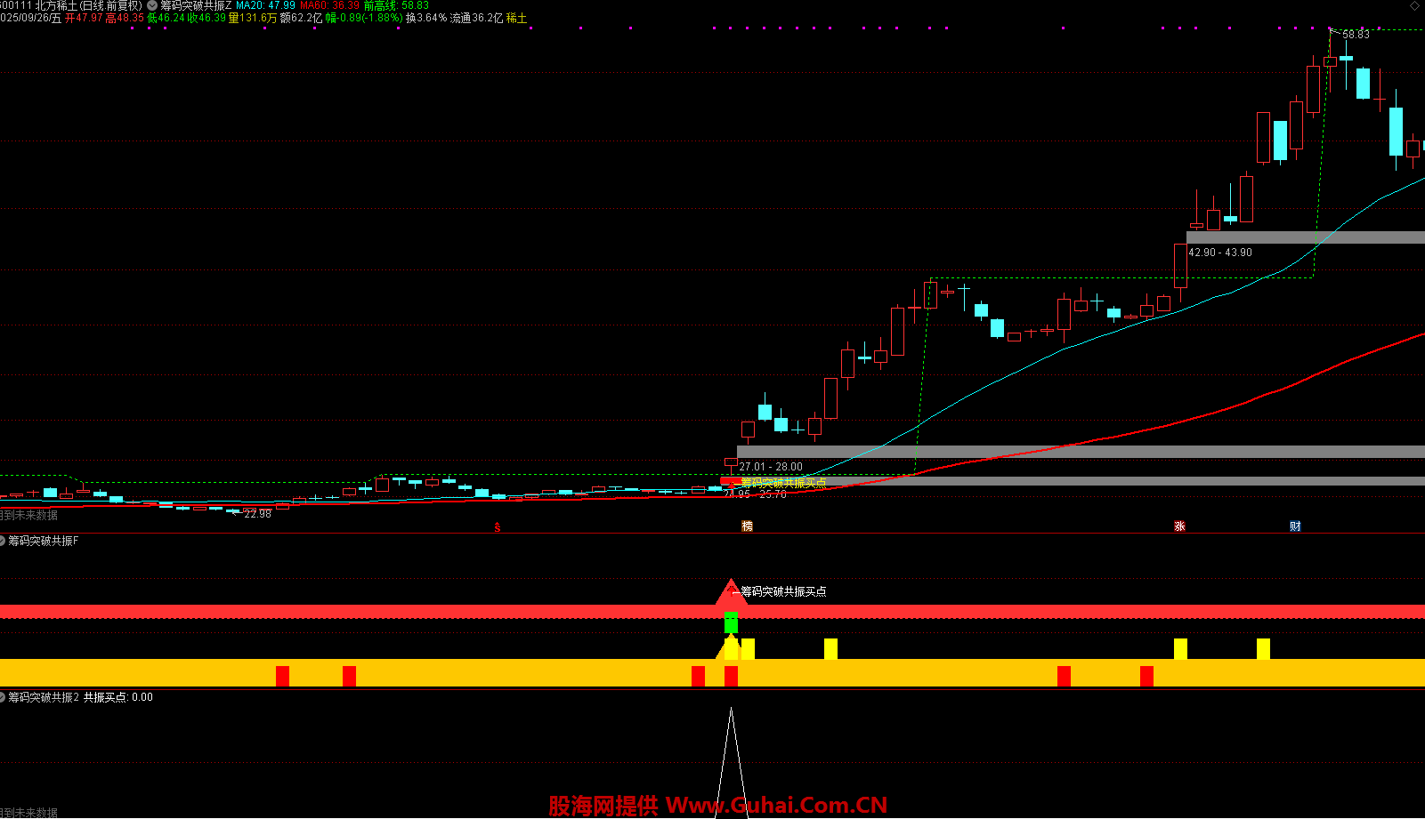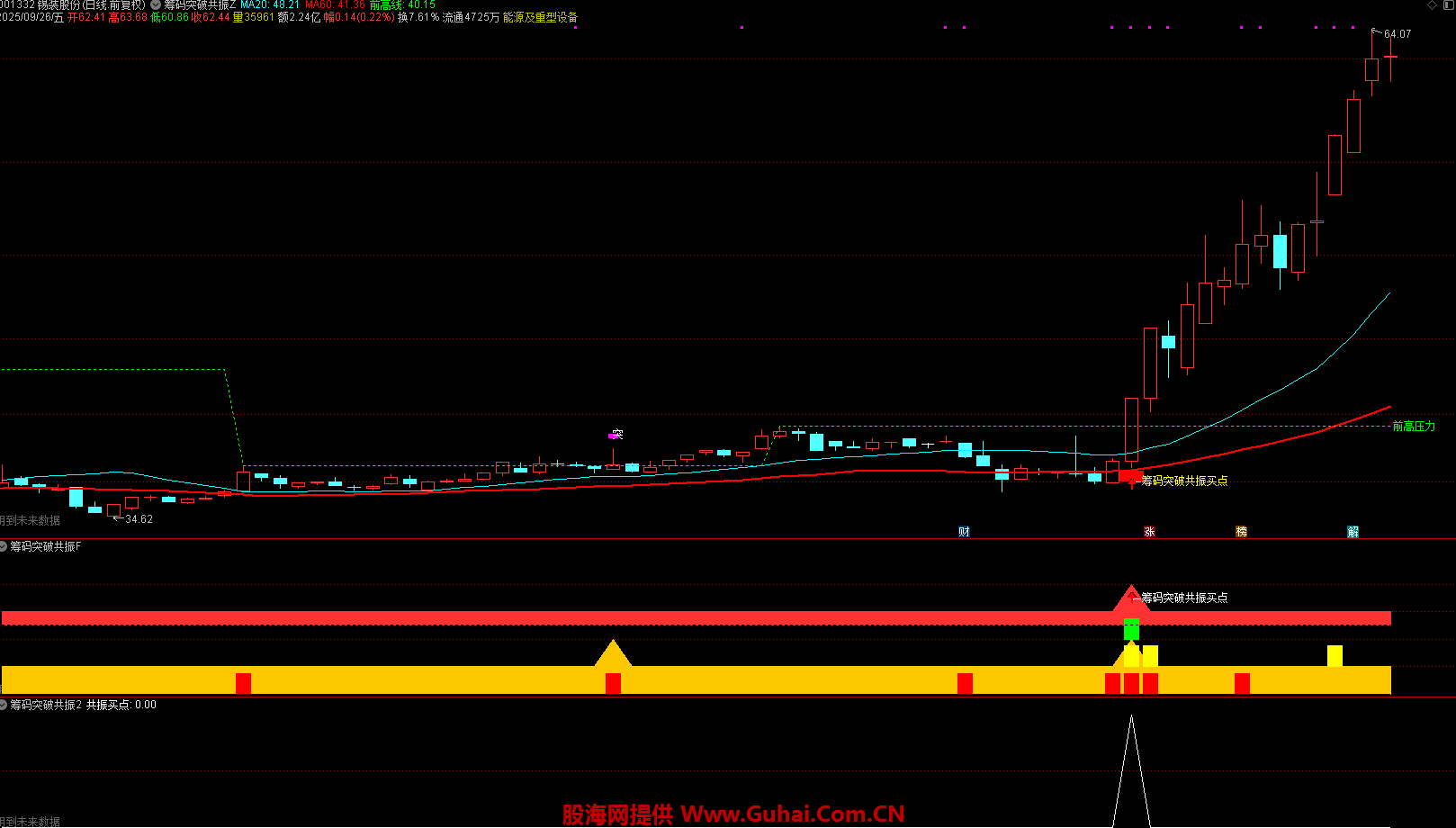 通达信 筹码突破共振 主副图选股 综合了前高突破、量价关系等四个维度的技术分析 源码文件分享