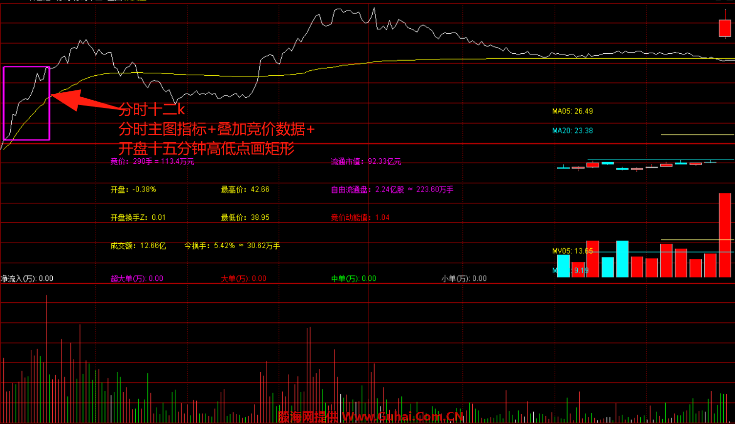 通达信 分时十二K 1分时主图+2引用副图指标 叠加竞价数据+开盘十五分高低点画矩形!源码文件分享