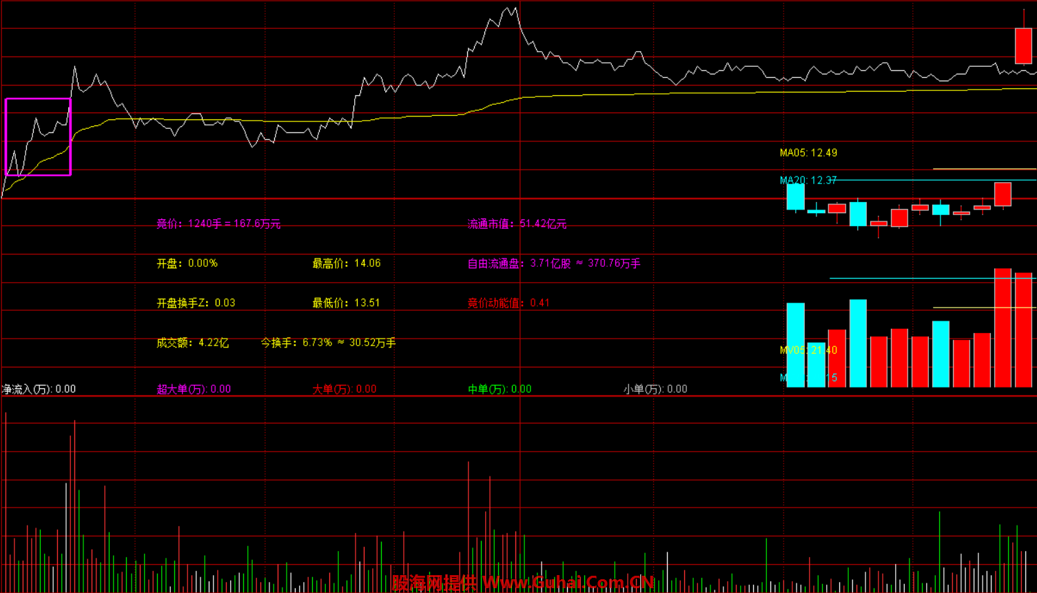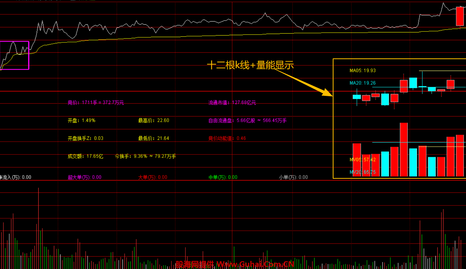 这个位置的高低点画一个矩形方便观察突破还是跌破【分时十二K】主图效果图: