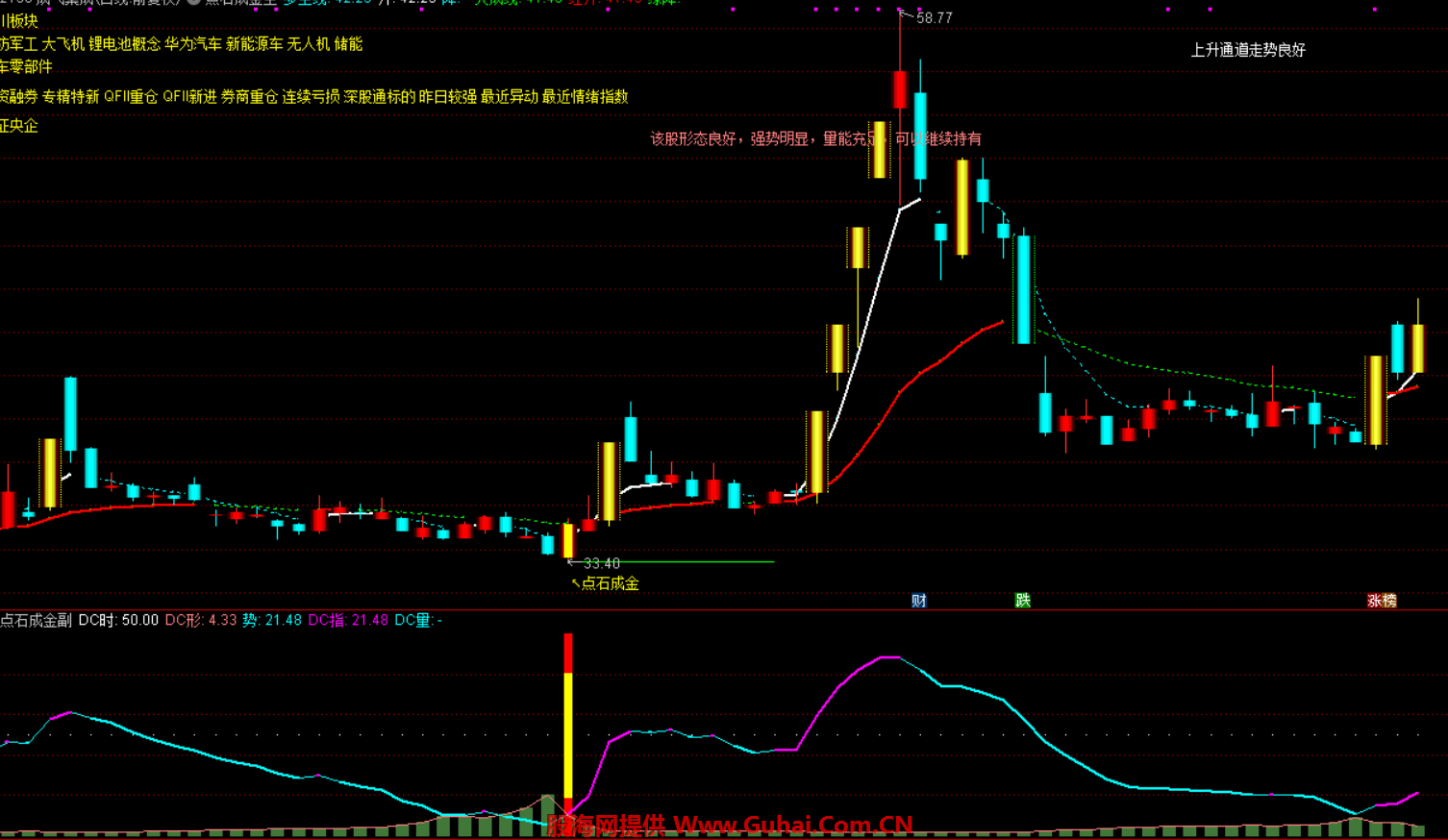 3、短线:可尾盘选股或将选股指标设置为预警,盘中自动弹出预警信号,结合资金、热点等短线参考,5日线或绿线为支撑设止损线;