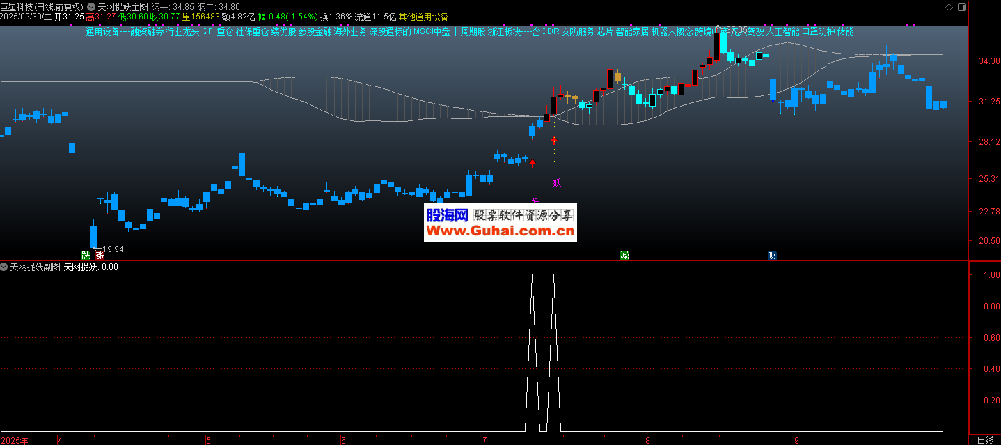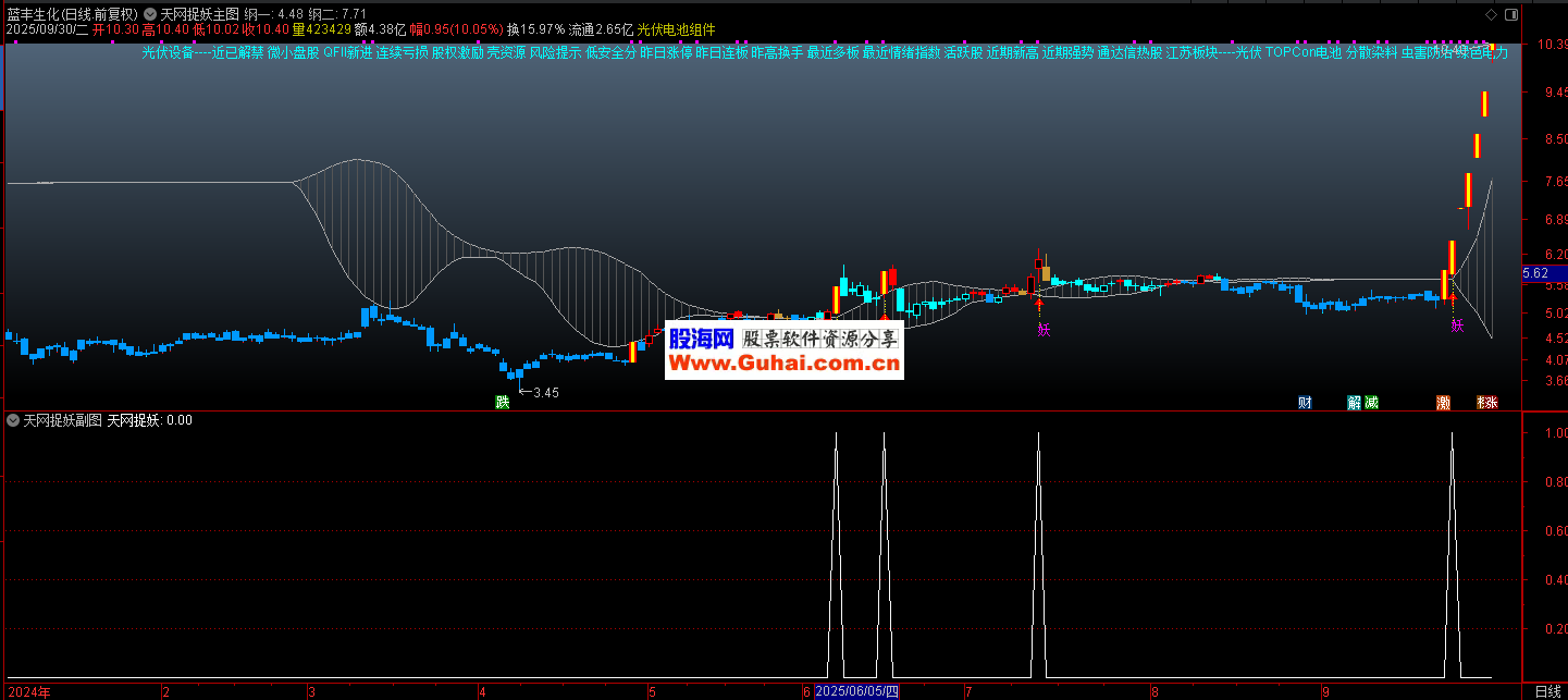 妖股信号应用:当出现 “妖” 字及黄色 K 线时,提示个股短期爆发力较强,可结合市场情绪关注,但需注意高位风险(妖股波动大)。