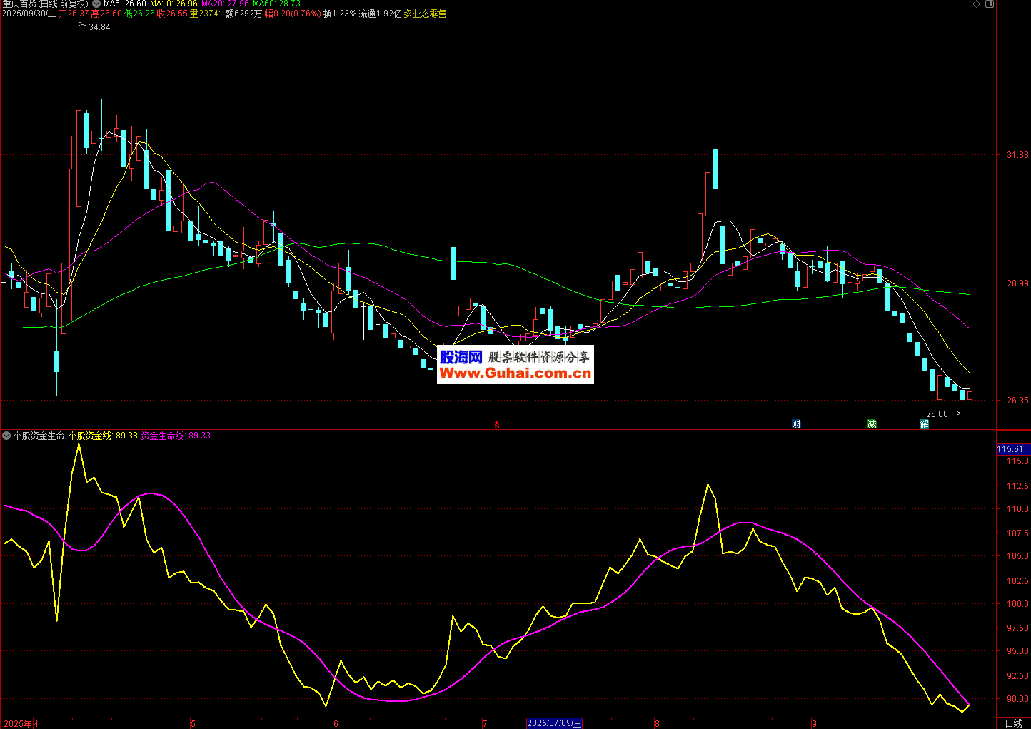 当个股资金线向下穿越资金生命线时,可能表明短期资金活跃度下降,股价有走弱的风险,可作为潜在的卖出信号参考。