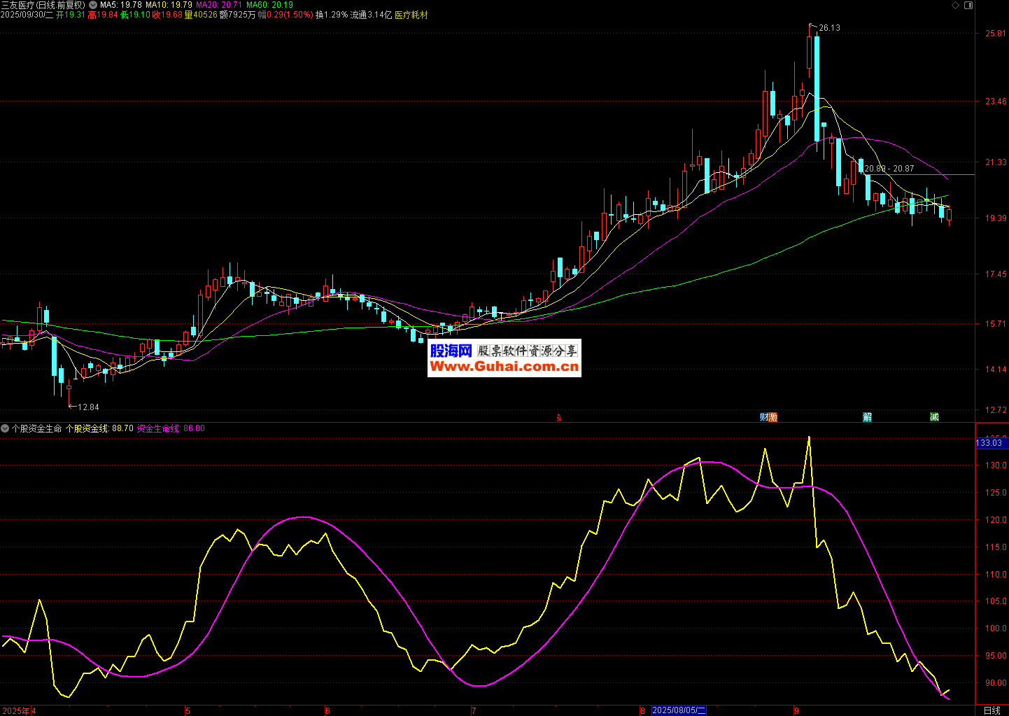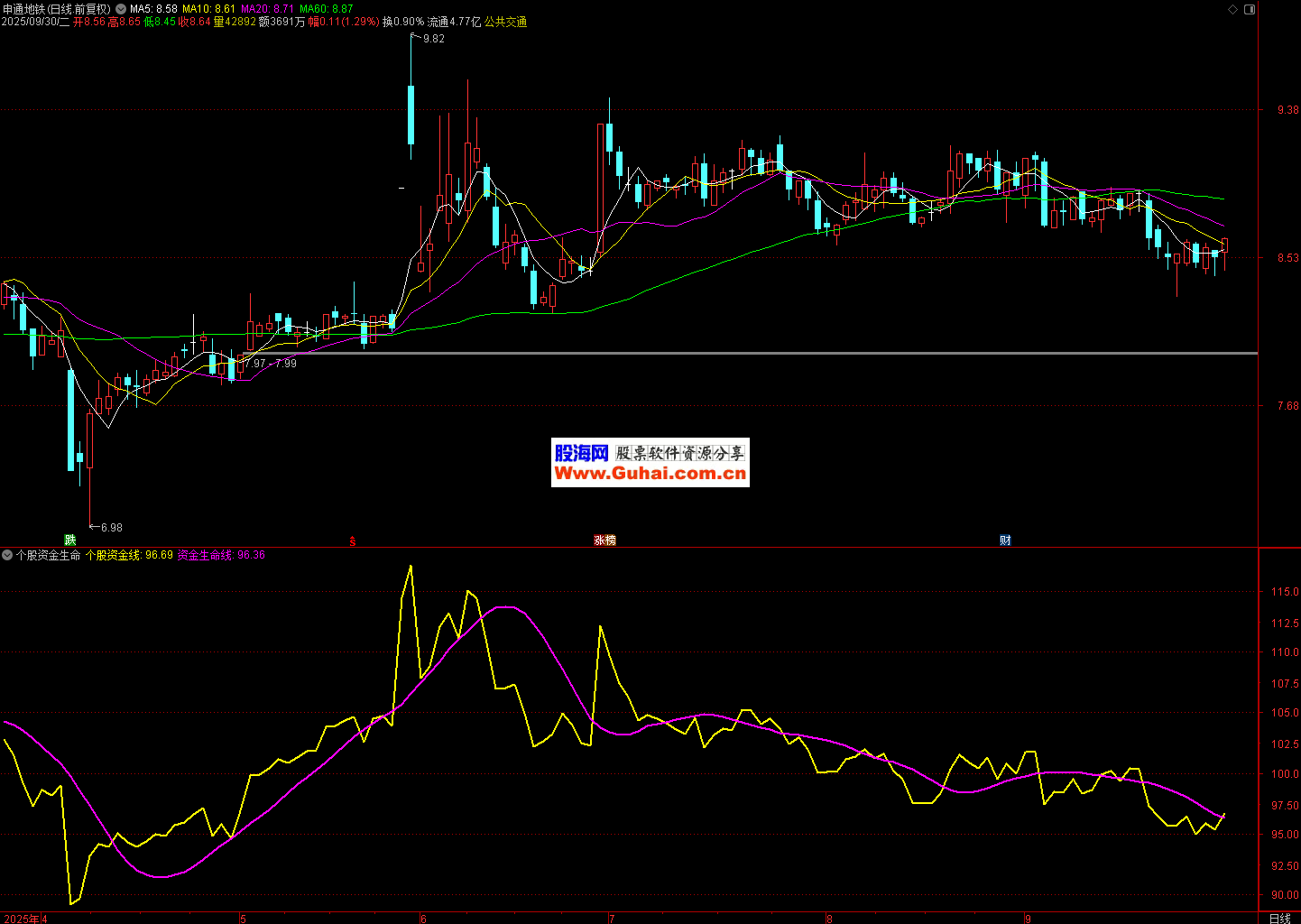 观察两条线的偏离程度,若个股资金线大幅偏离资金生命线后回归,可能意味着股价的短期波动将趋于平稳。