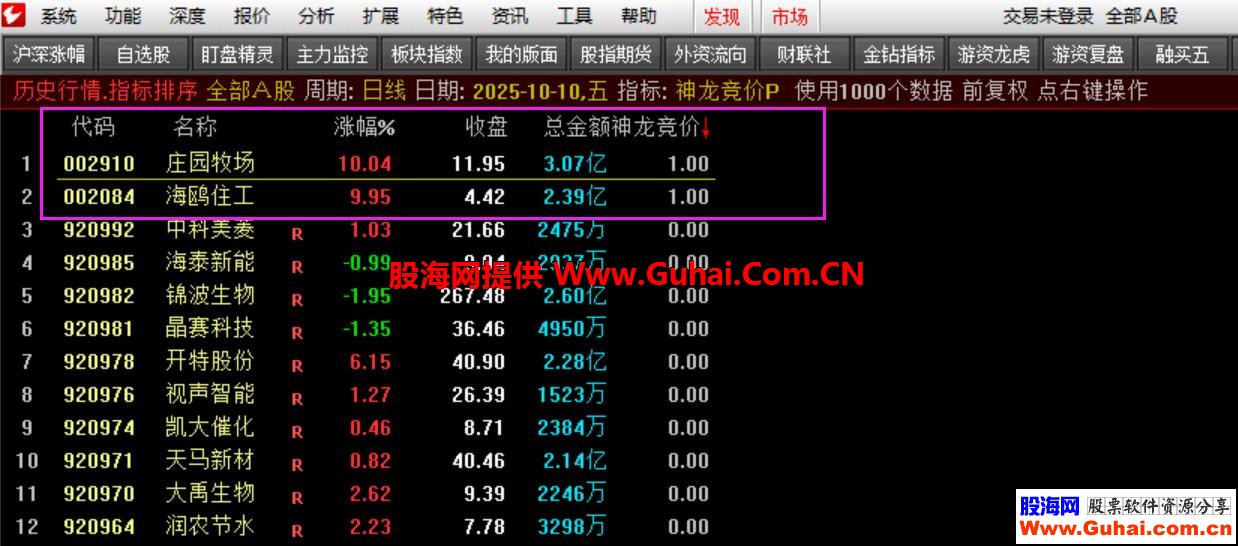 通达信【神龙竞价】排序选股复合型竞价策略 精准捕捉早盘强势潜力股 源码文件分享