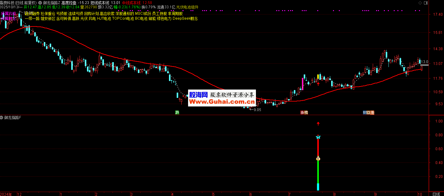 资金控盘度:结合13日成本均线计算高度控盘状态(幅度>50),识别主力锁仓;