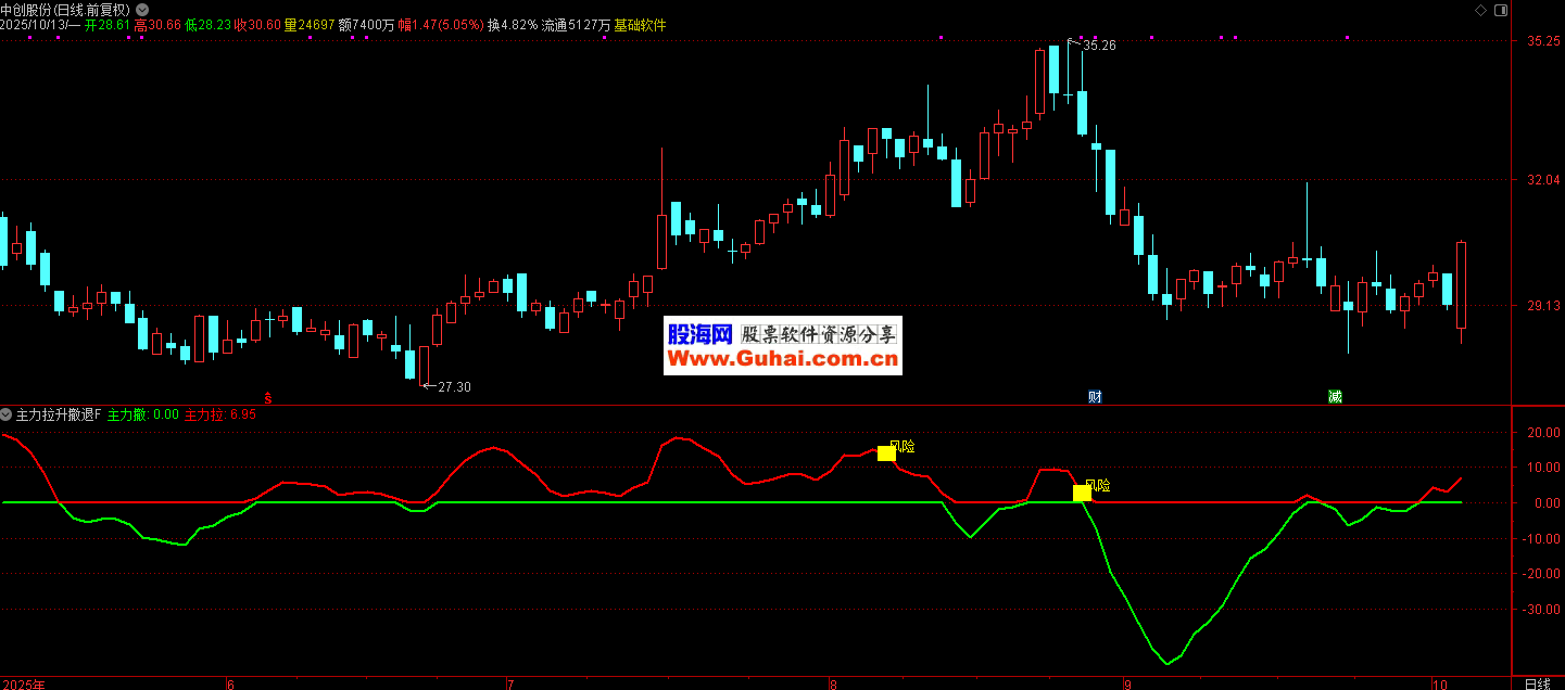 日线周期:用于判断中期(1-2 周)主力资金趋势,适合波段操作(如持仓 3-5 个交易日),“风险” 信号多对应波段顶部,可作为波段止盈参考。